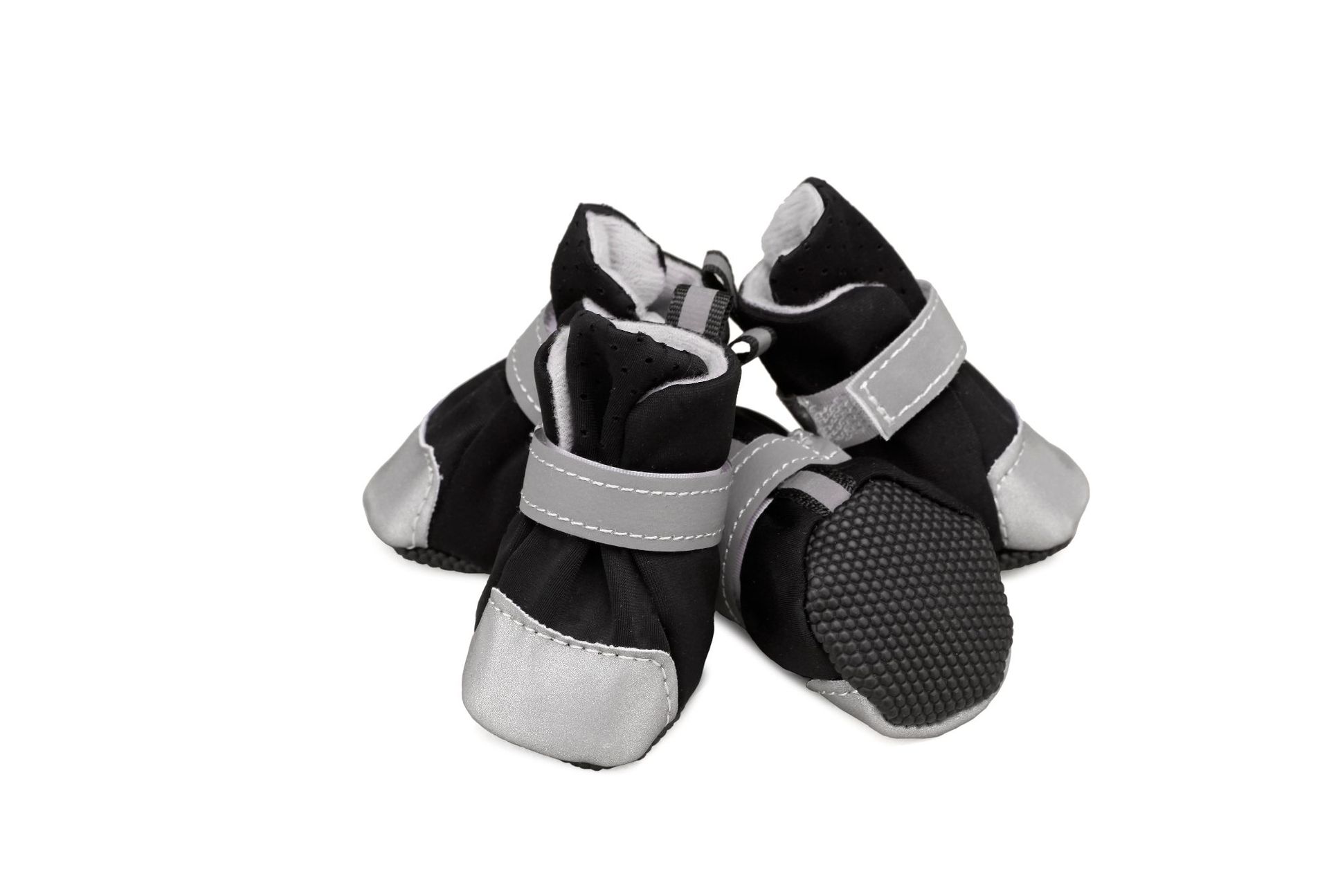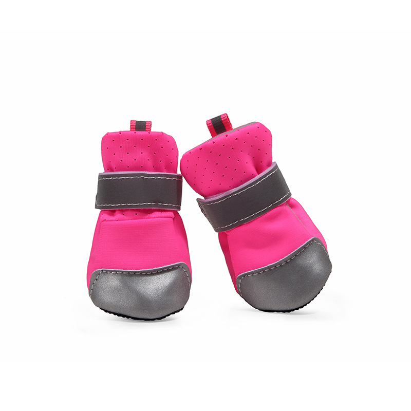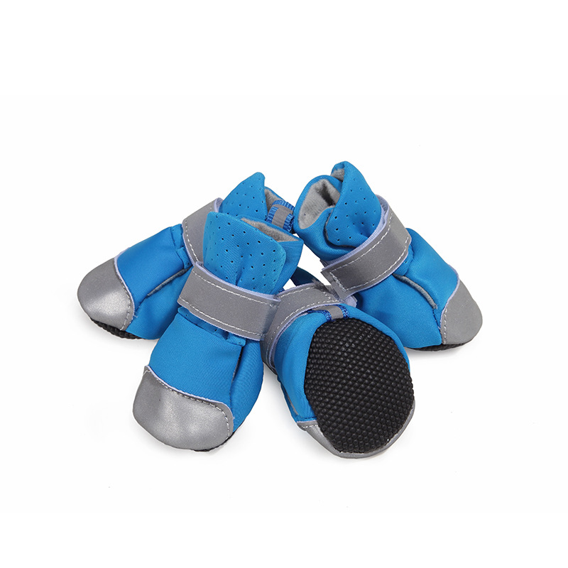 • 鞋身采用透气莱卡面料+反光磨术粘绑带.鞋子采用了V型大开口的设计,方便于穿脱,给狗脚更多的透气空间.质感柔软舒适,实心橡胶鞋底防滑耐磨.