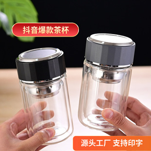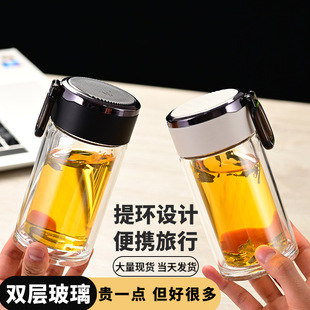 玻璃漱口杯耐高温透明水杯开业赠送高硼硅咖啡杯双层杯子百货批发