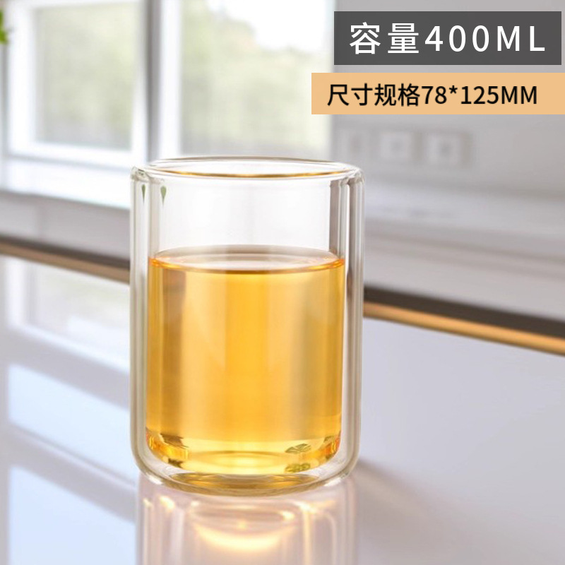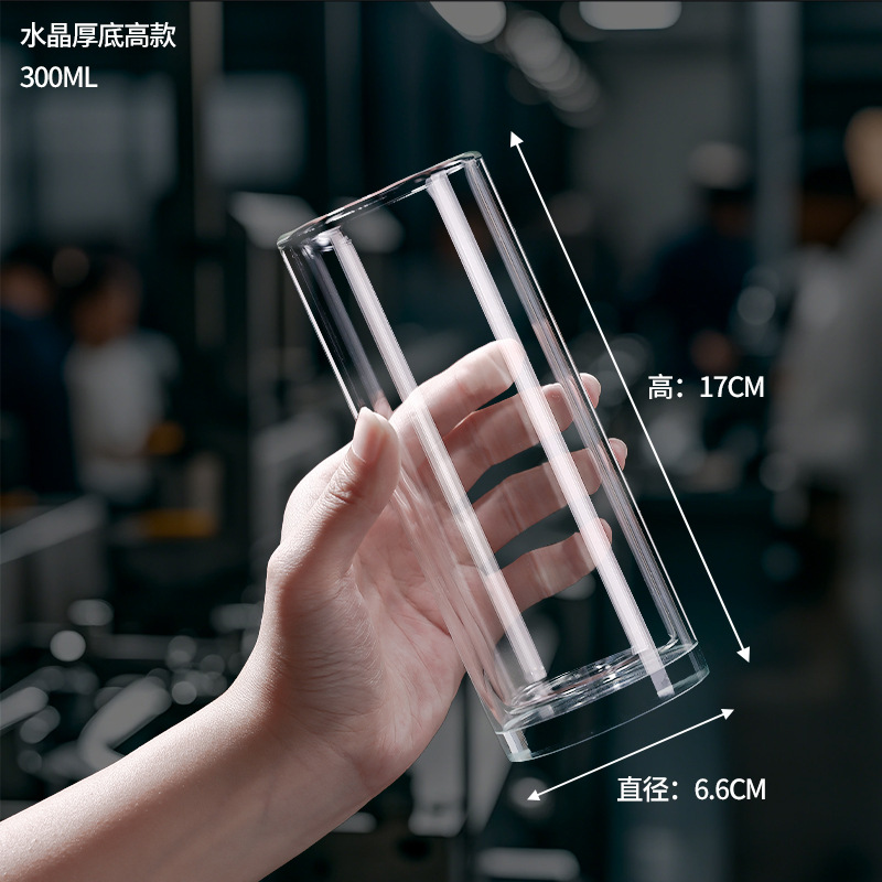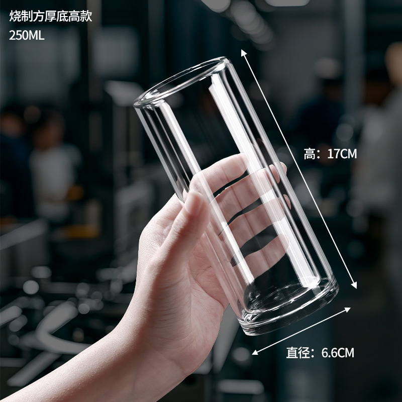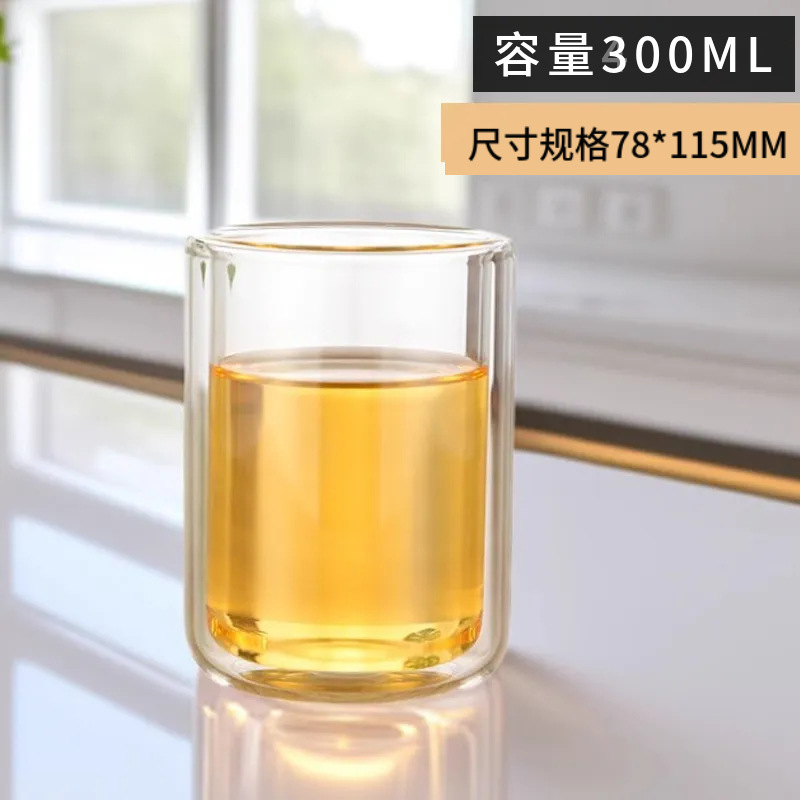 玻璃漱口杯耐高温透明直筒高硼硅无盖咖啡杯双层隔热牙刷杯批发