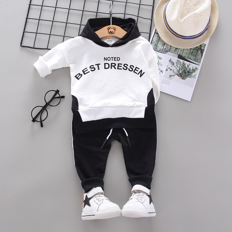 2024 새로운 봄과 가을 1-5 세 아기 두 바 풀 긴 소매 후드 팬츠 두 어린이 세트 조수스토어 가기