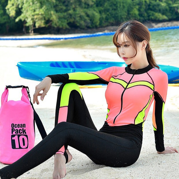 한국의 새로운 온천용 원피스 수영복, 살을 덮는 긴팔 방수 시어머니 자외선 차단 속건 스노클링 잠수복