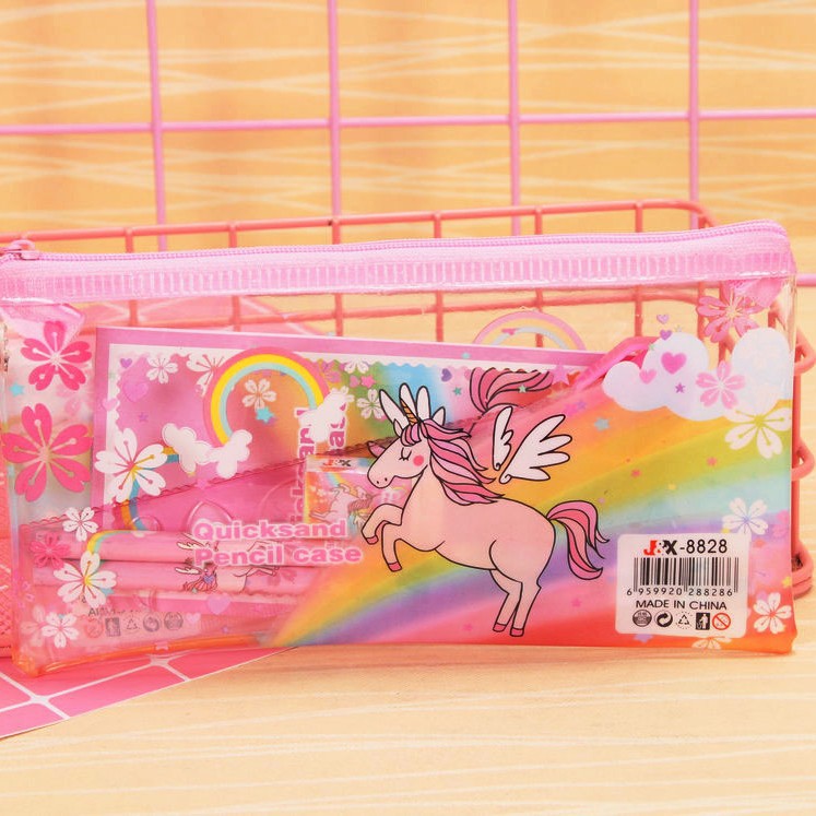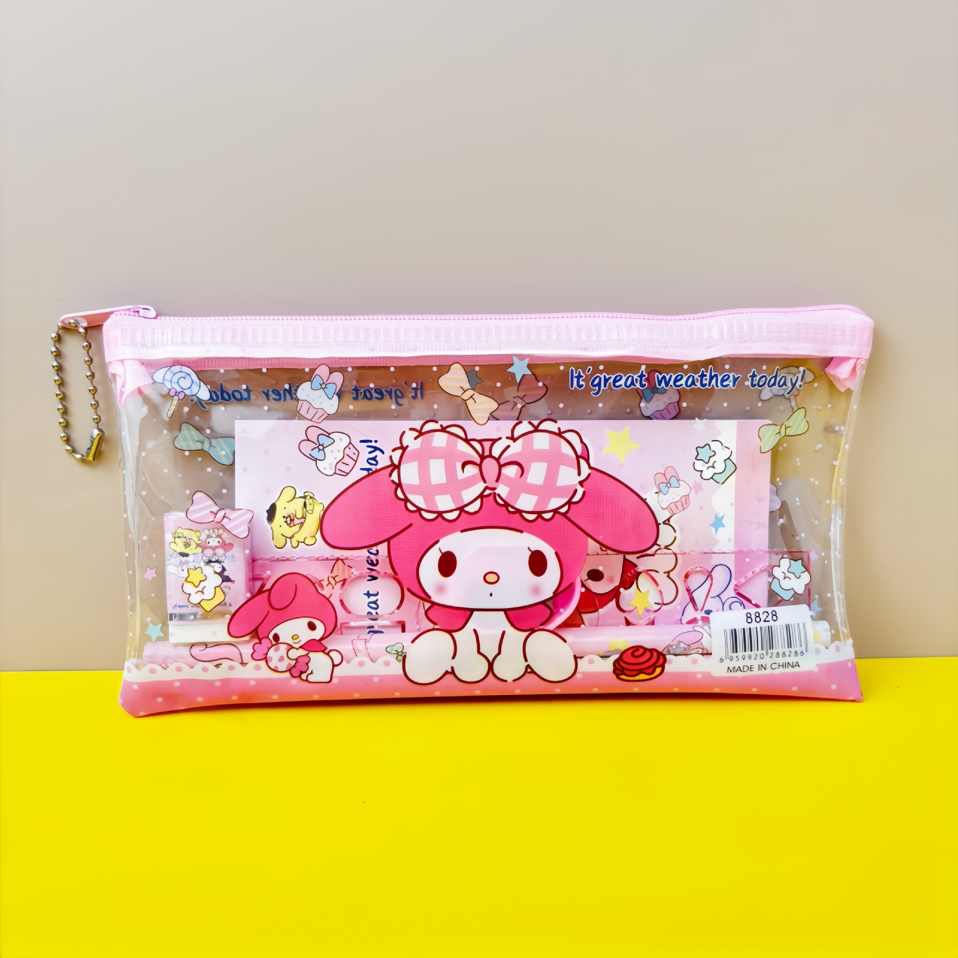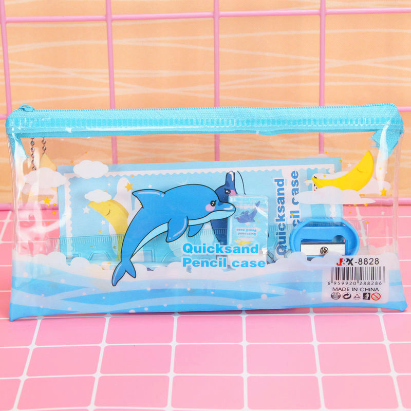 8828内含铅笔2支,橡皮1个,卷笔刀1个,纸质模板尺1把