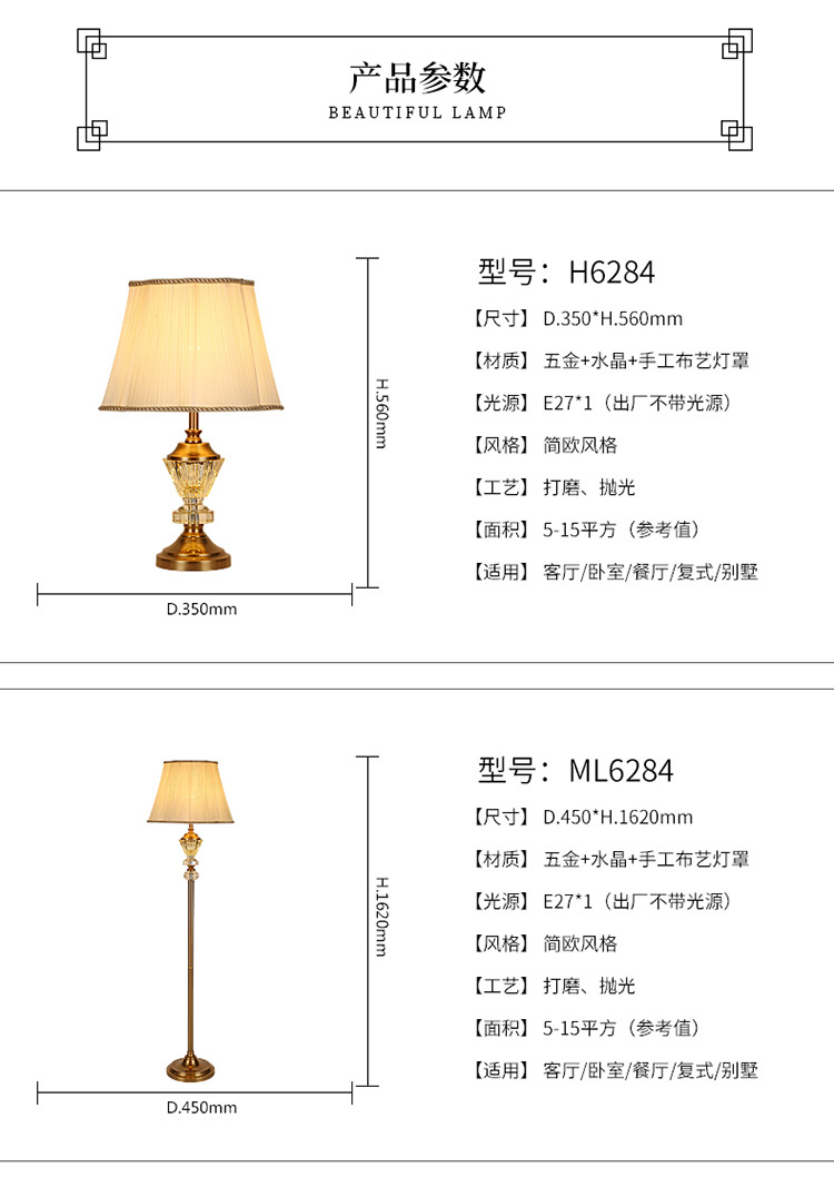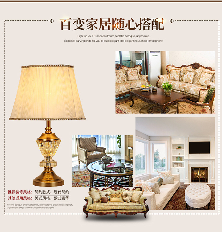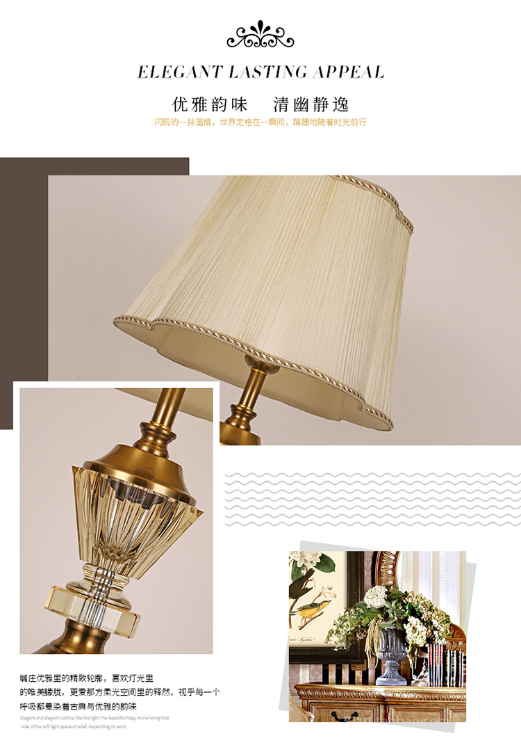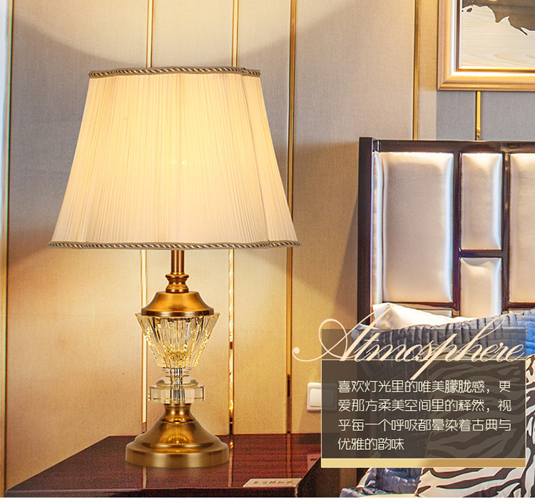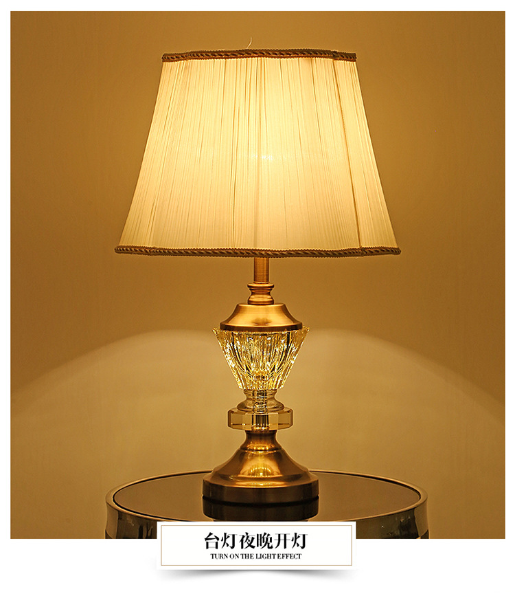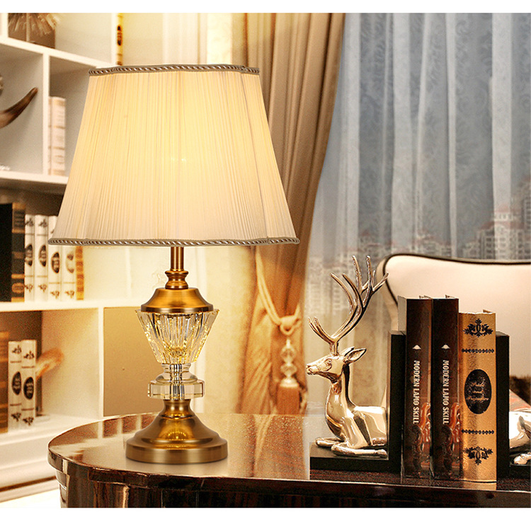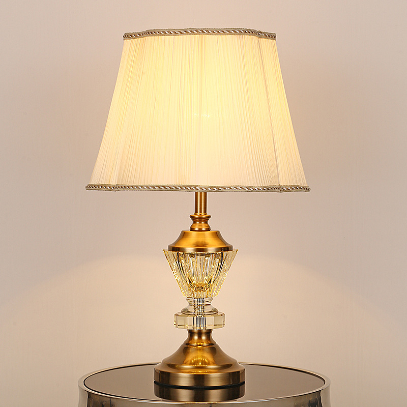 유럽 스타일 크리스탈 테이블 램프 호텔 침실 침대 옆 미국 스타일 현대 간단한 패브릭 장식 크리스탈 플로어 테이블 램프