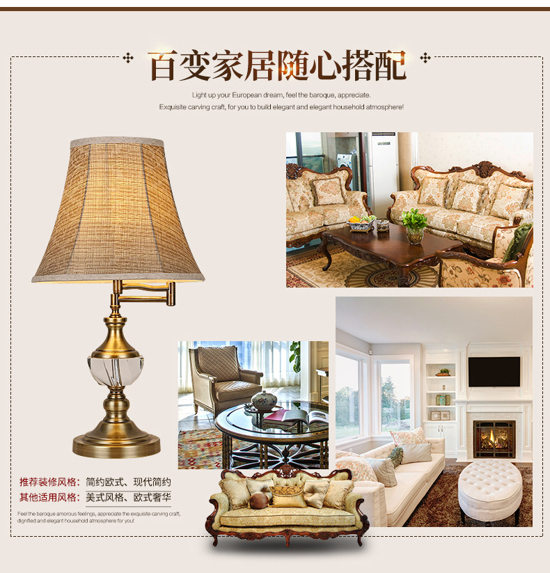 Gayon 조명 유럽-미국 크리스탈 테이블 램프 로커 암 다기능 공부방 책상 현대 램프