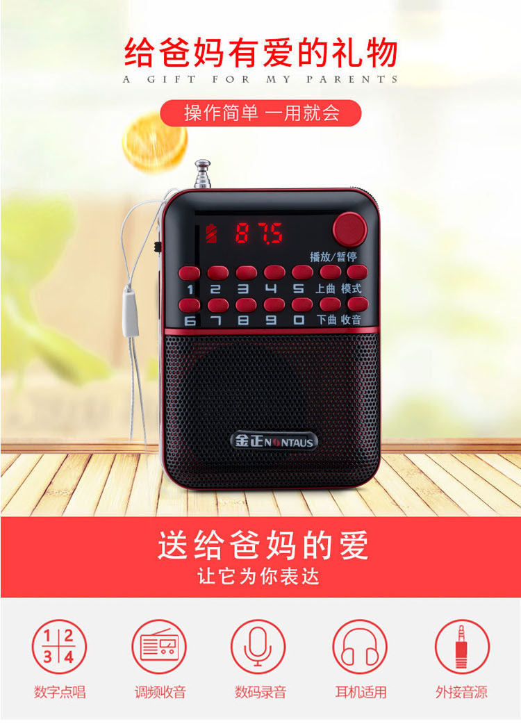 노인용 진청 S63 라디오 미니 휴대용 소형 스테레오 카드 스피커 MP3 플레이어 워크맨
