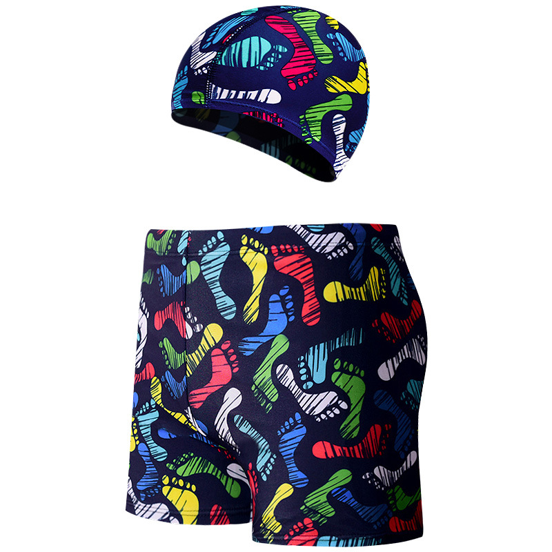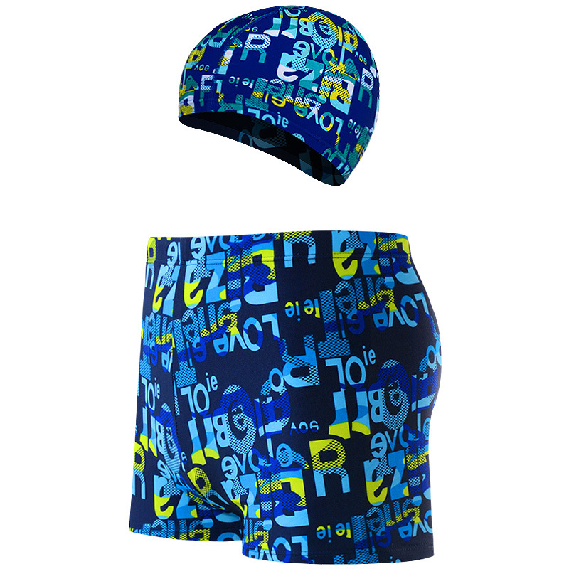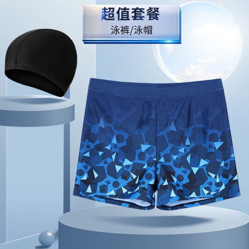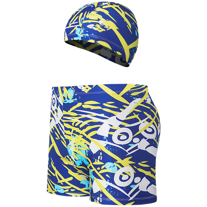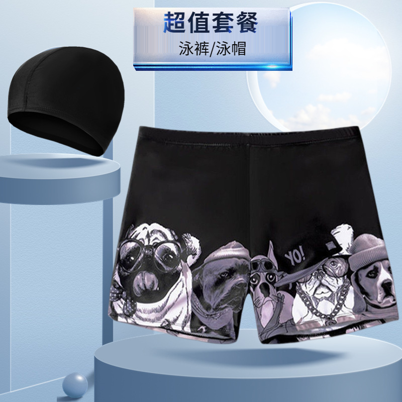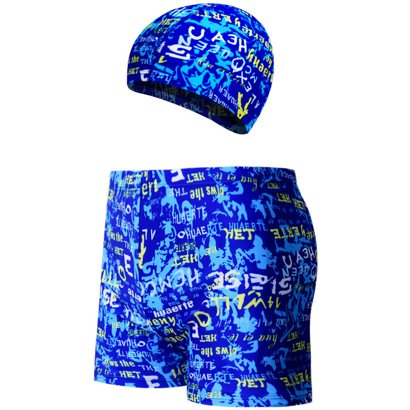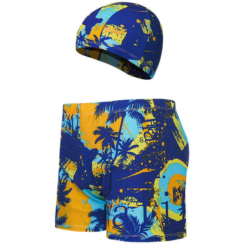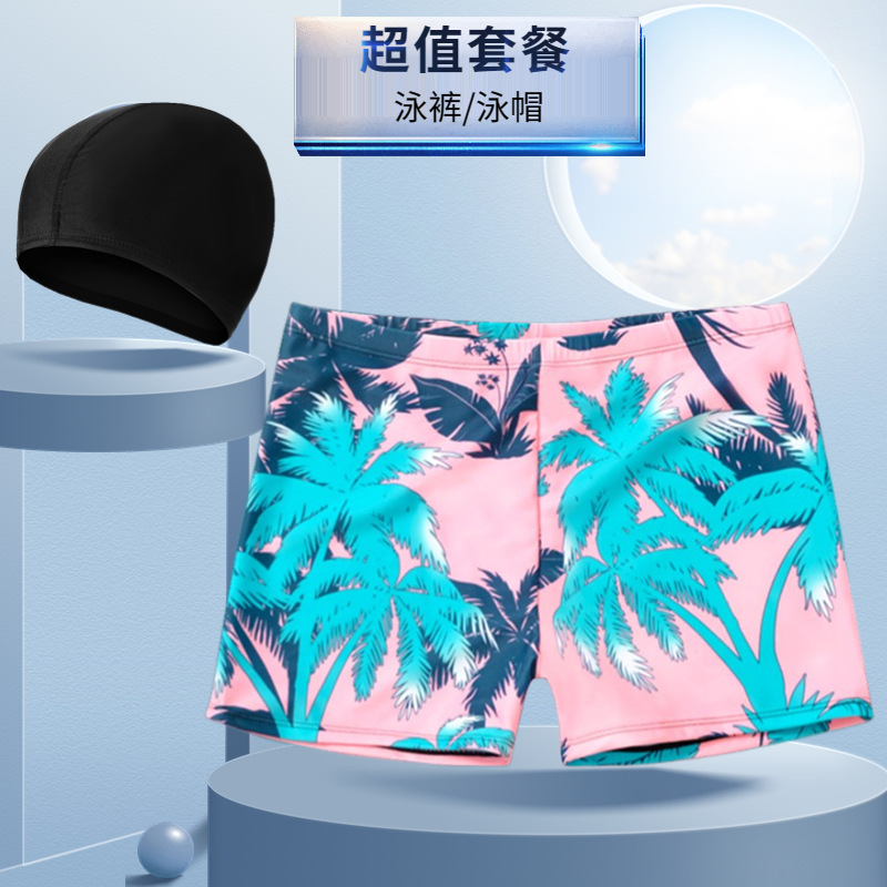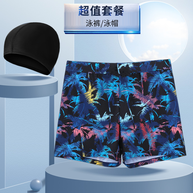 새로운 남자의 세트 수영 트렁크 패션 플러스 사이즈 느슨한 편안한 온천 복서 바지 모자 부드러운 수영복