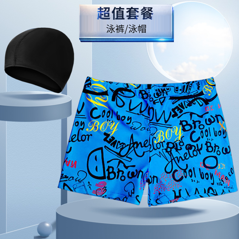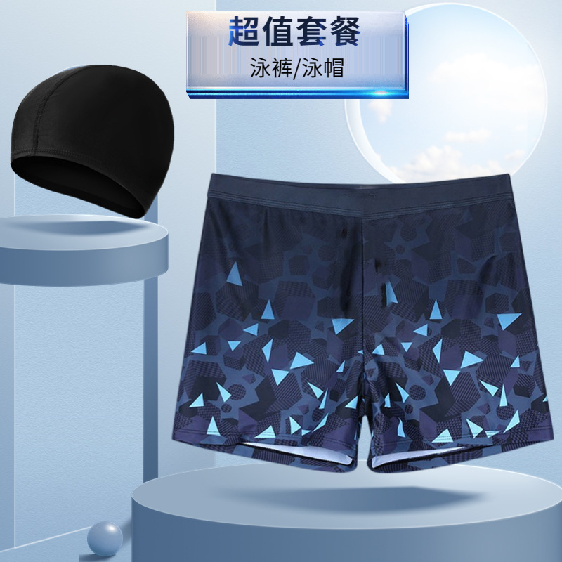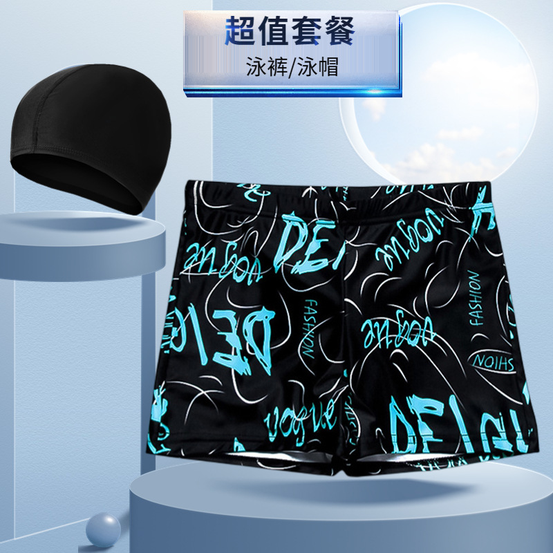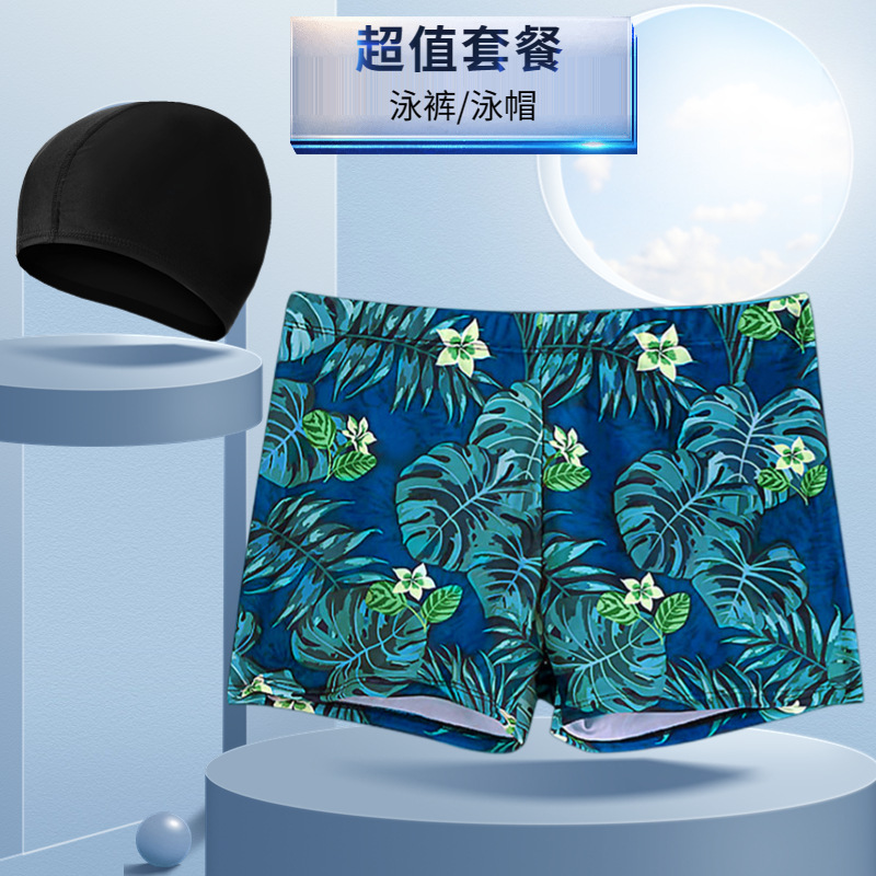 새로운 남자의 세트 수영 트렁크 패션 플러스 사이즈 느슨한 편안한 온천 복서 바지 모자 부드러운 수영복스토어 가기