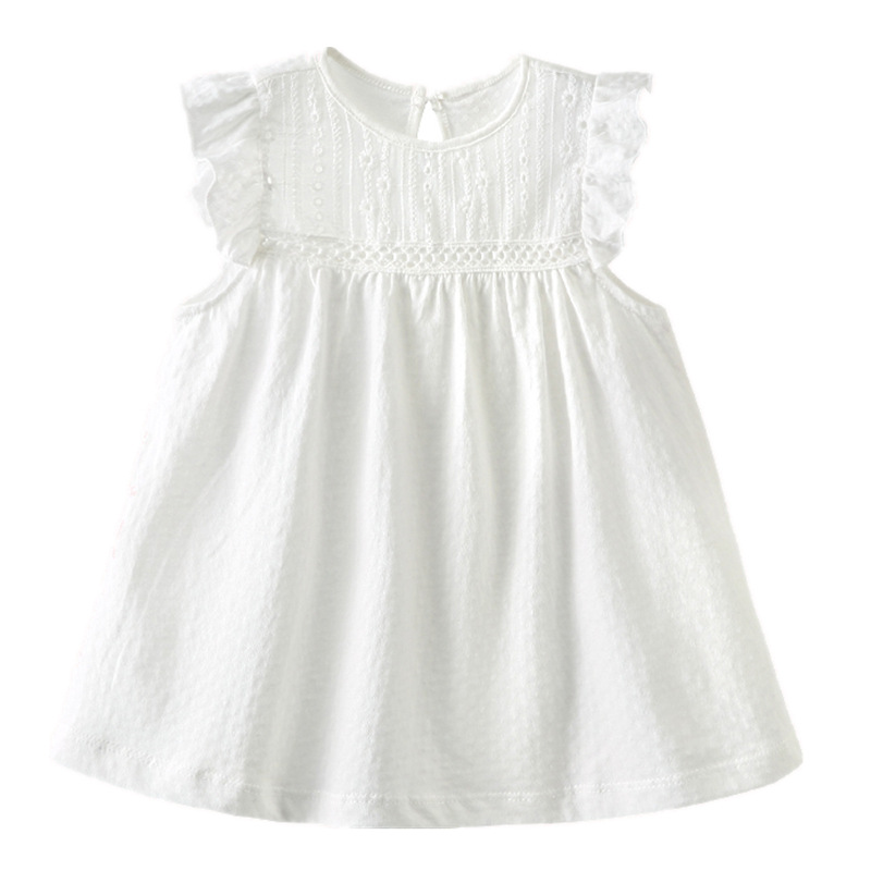 국경을 넘는 인기 상품, 여아용 여름 원피스, 가볍고 부드러우며 통기성 좋은 A급 순면 자카드 화이트 원피스