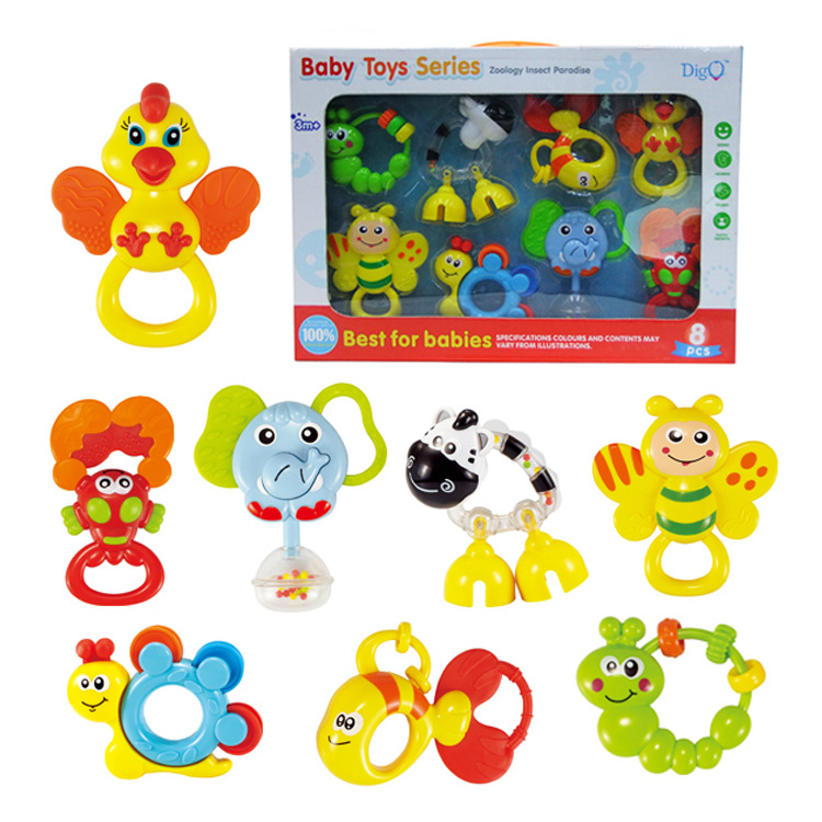 | 品名:供应SM335399 8款摇铃 卡通动物婴儿摇铃套装 宝宝益智手摇铃玩具 | |||