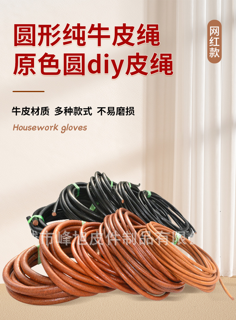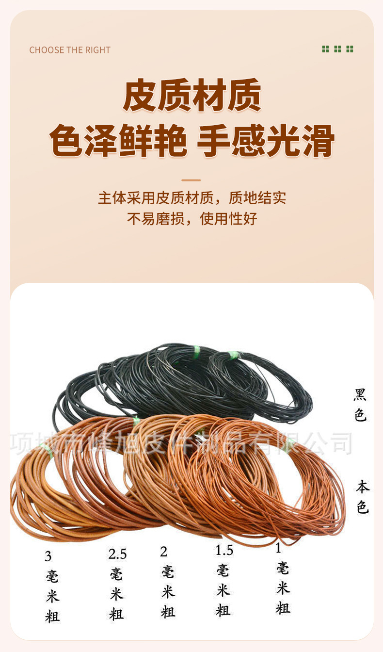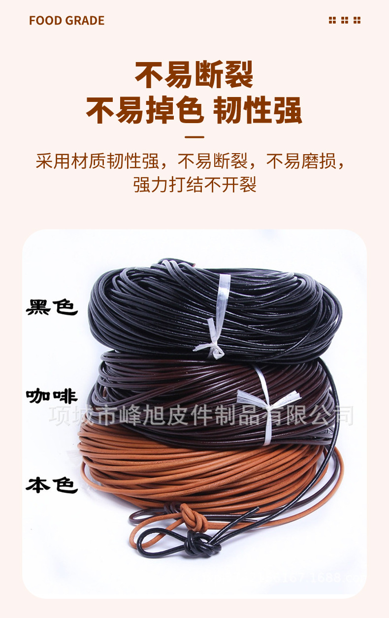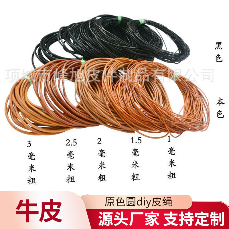 1.5/2/3/4MM 기본 색상 라운드 DIY 가죽 로프 라운드 가죽 로프 가죽 로프 가죽 로프 가죽 로프