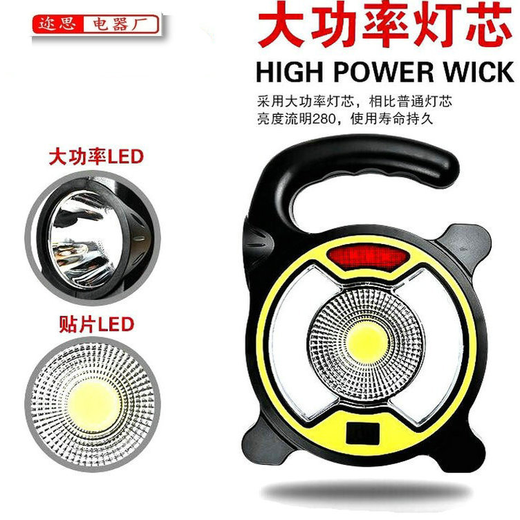 충전식 야외 휴대용 램프 손전등 태양열 COB 캠핑등 경고등 휴대 전화 작업등 충전 가능스토어 가기