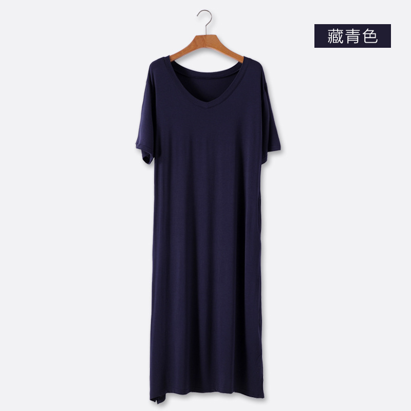 批发条纹美背家居裙莫代尔宽松睡裙可外穿短袖睡裙免穿文胸家居裙