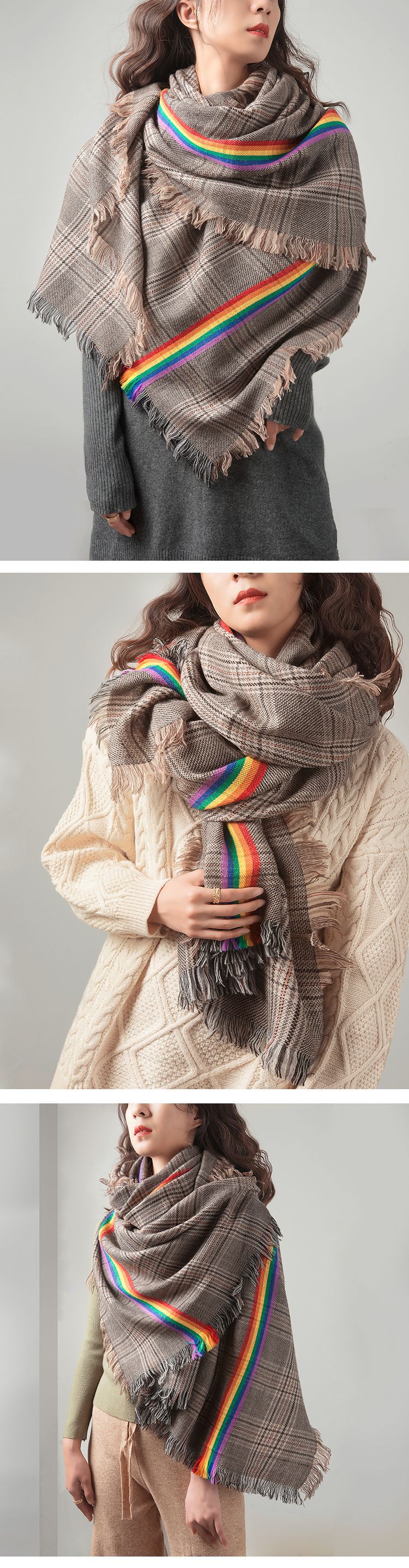 2023 가을과 겨울 순수 울 스카프 공장 영국 격자 무늬 무지개 스카프 Houndstooth 양고기 울 숄 가을과 겨울스토어 가기