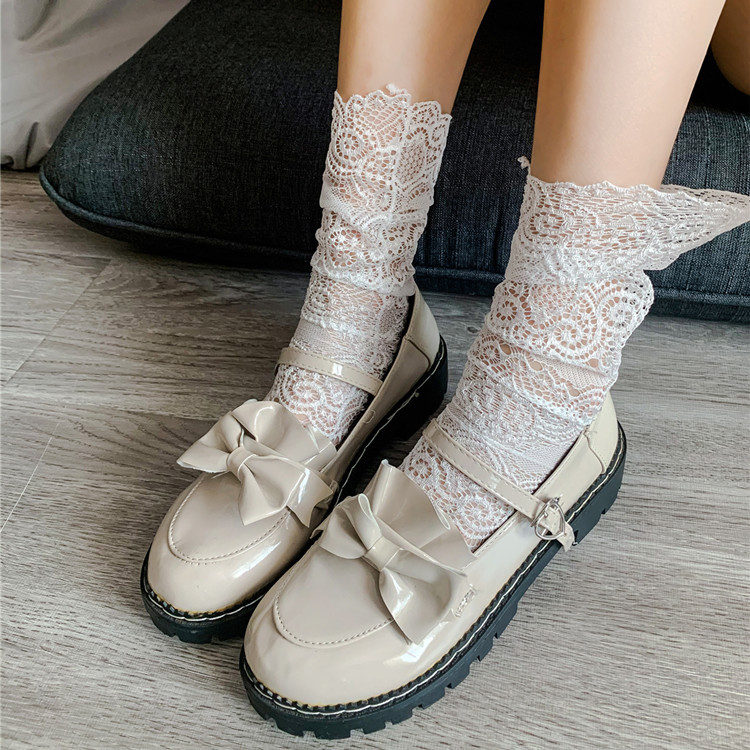 봄과 가을 여성 양말 공작 패턴 레이스 양말 한국식 스택 면베이스 부츠 양말 JK 중공 공주 양말