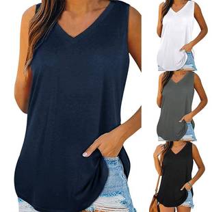 欧美跨境2022夏季新款女装亚马逊ebay时尚休闲V领纯色吊带小背心
