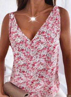 2022亚马逊欧美外贸女装夏季无袖雪纺V领背心宽松印花无袖上衣