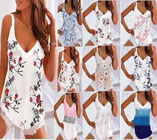 2022欧美跨境女装 夏季新款 数码印花休闲吊带连体短裙
