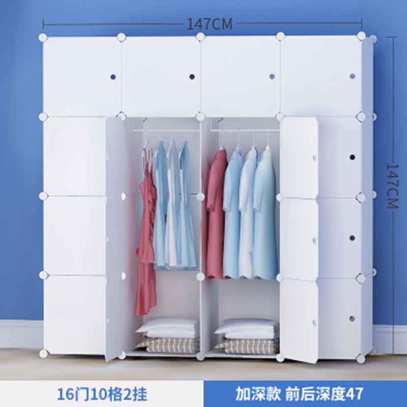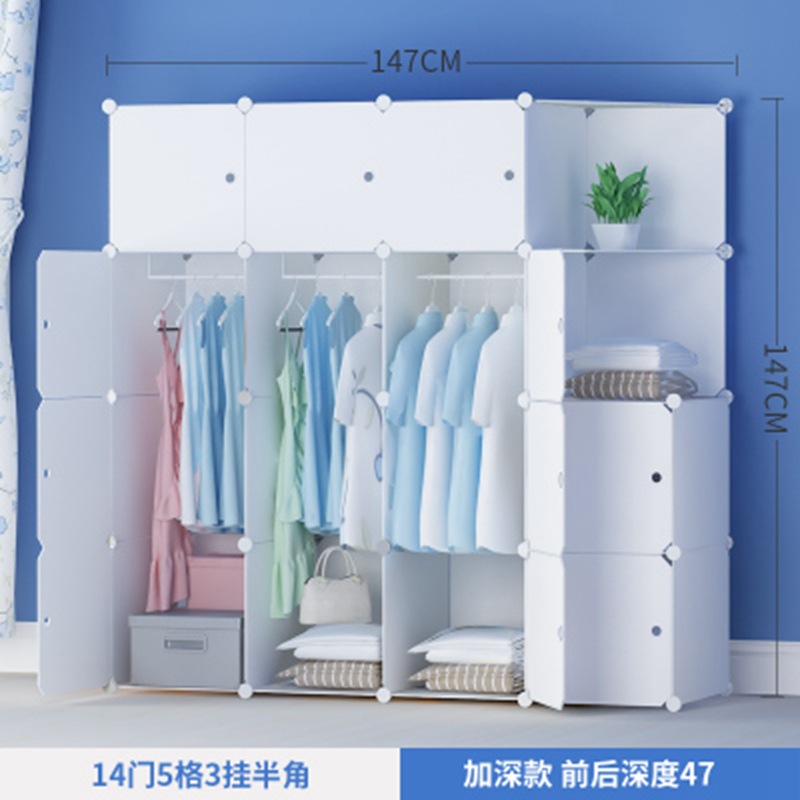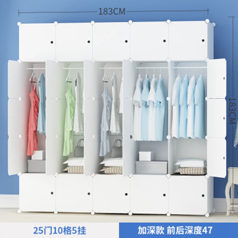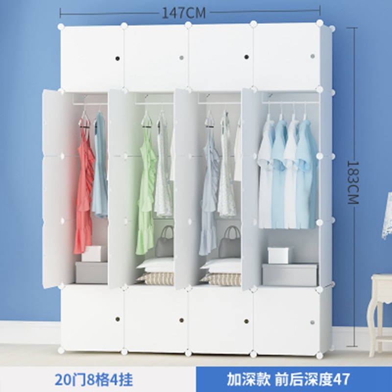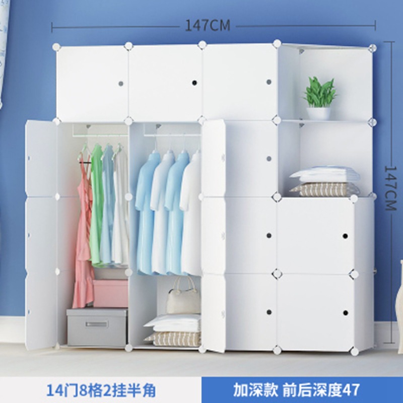 简易衣柜组装成人塑料衣橱双人简约现代经济型布艺钢架白色挂衣柜