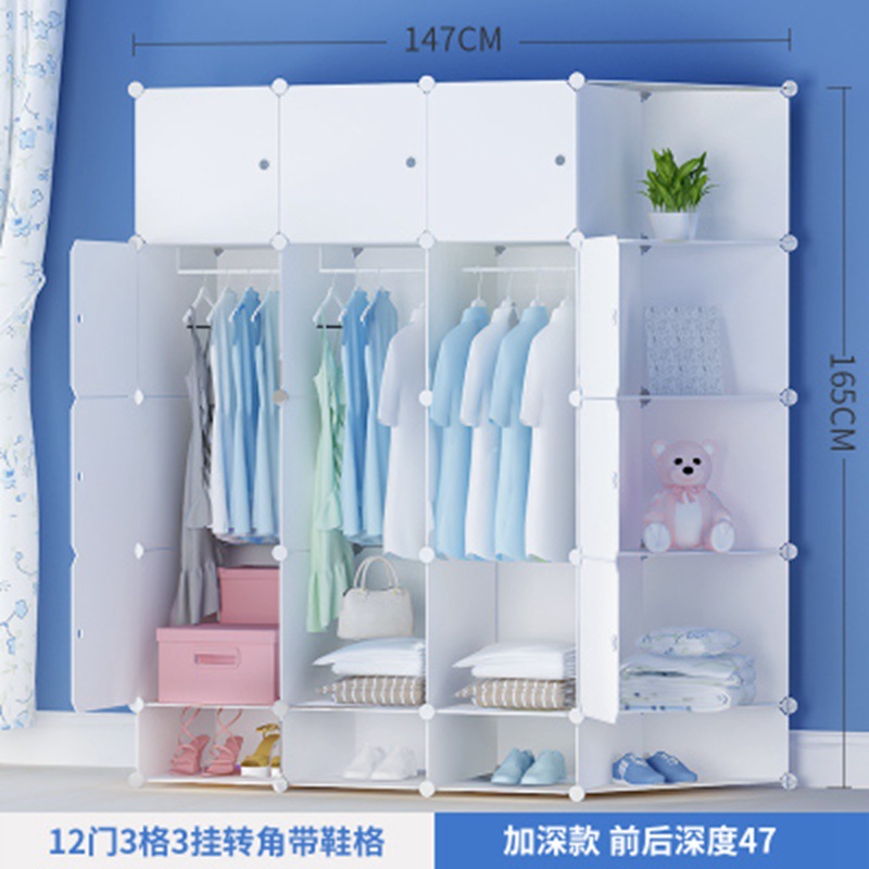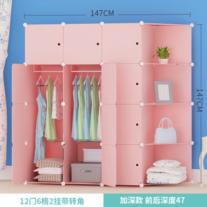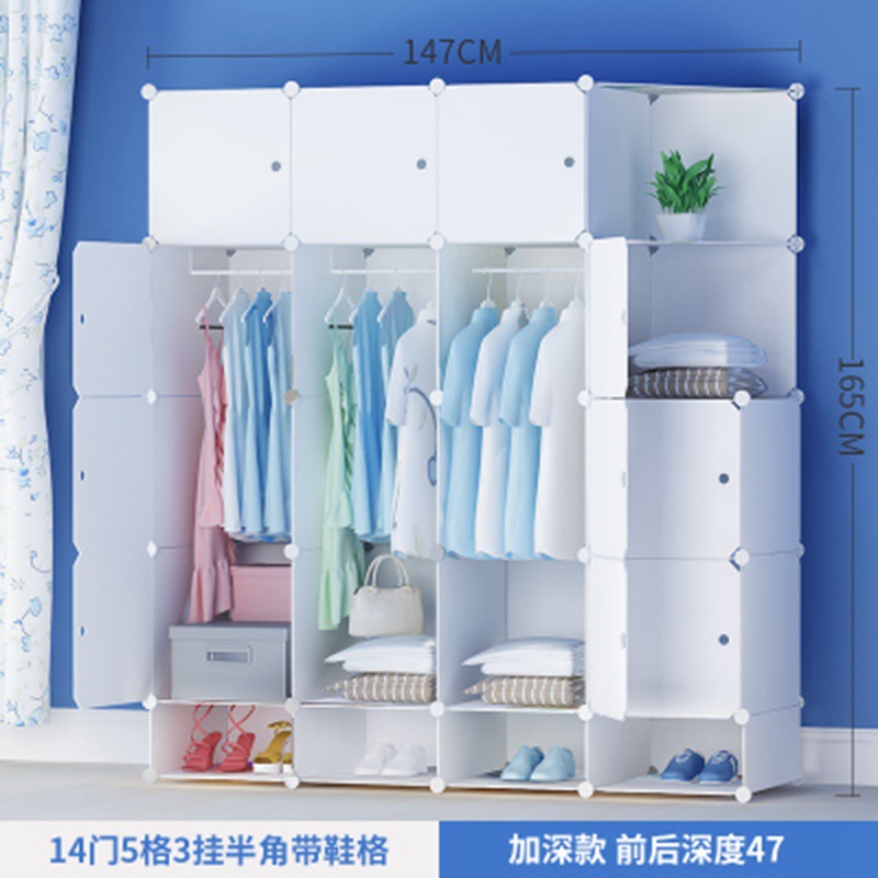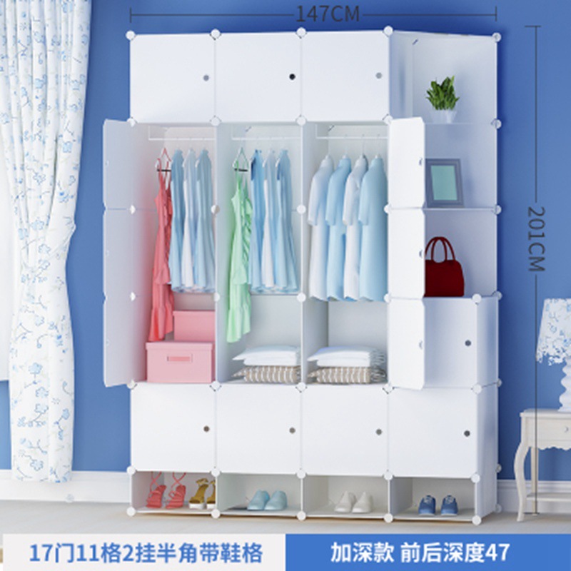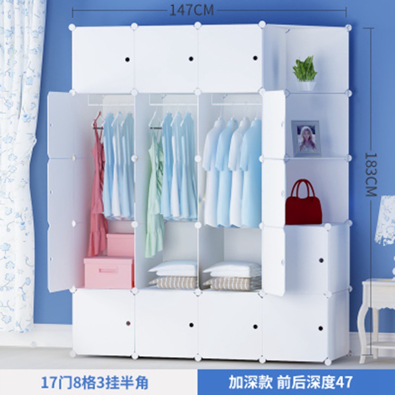 简易衣柜组装成人塑料衣橱双人简约现代经济型布艺钢架白色挂衣柜