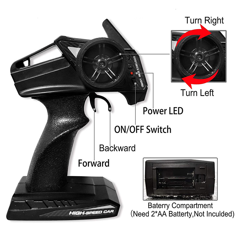 配件说明:遥控车*1,遥控器*1,车身电池组*1,说明书*1,USB充电线*1