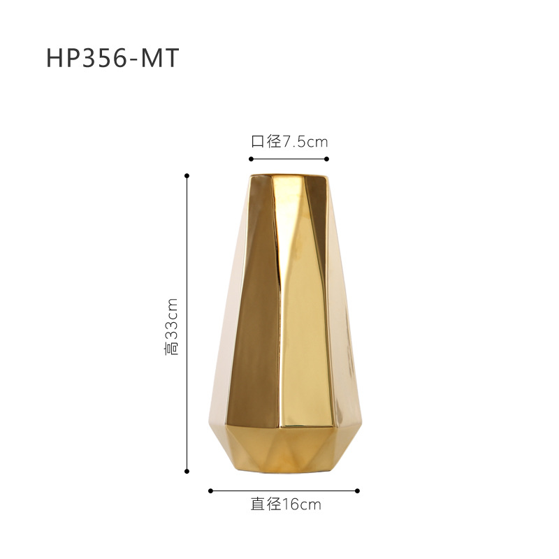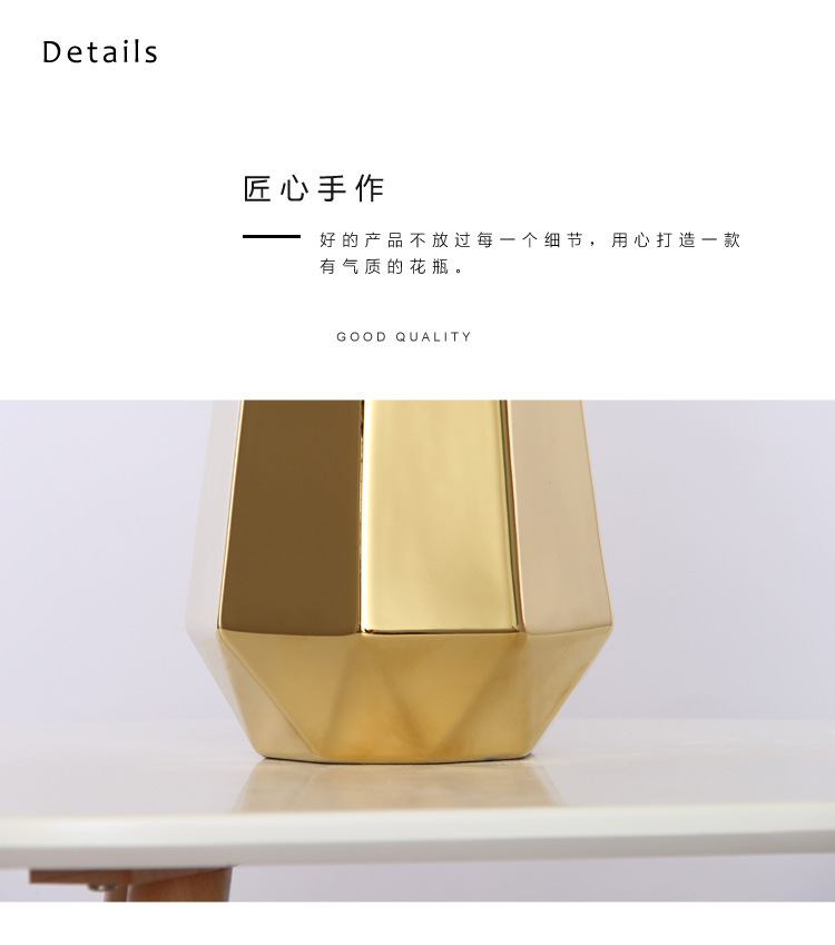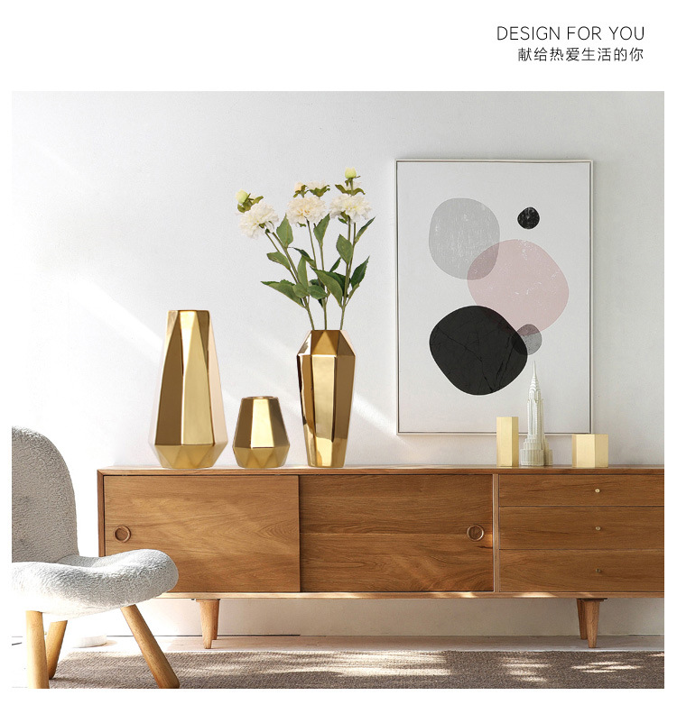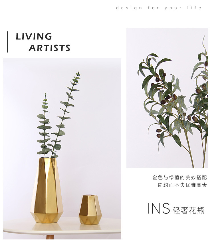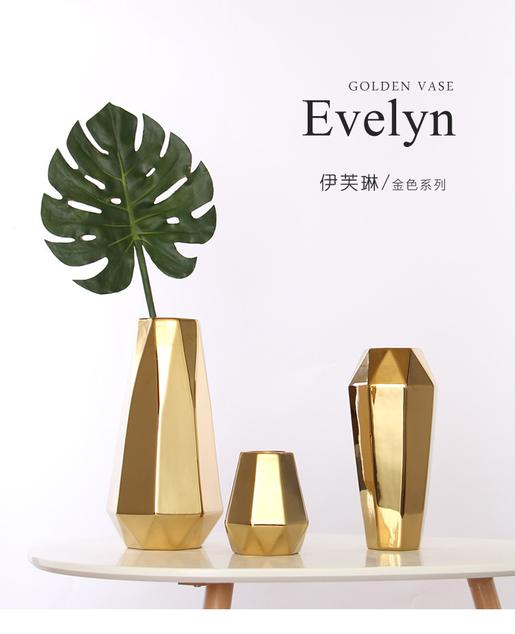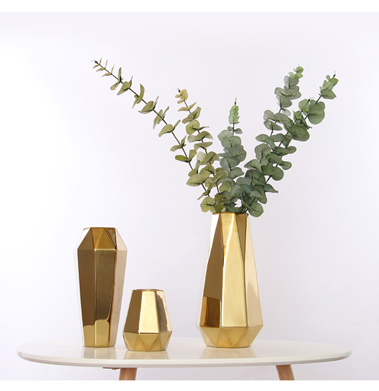 황금 간단한 북유럽 스타일 전기 도금 기하학적 추상 세라믹 꽃병 디자이너 모델 룸 장식품 도매스토어 가기