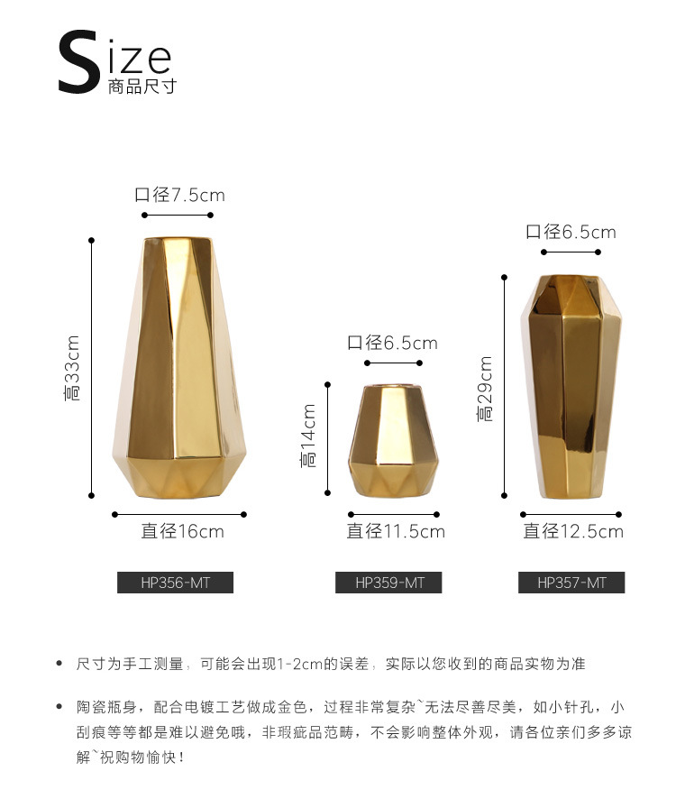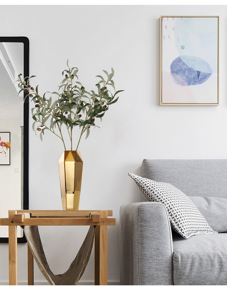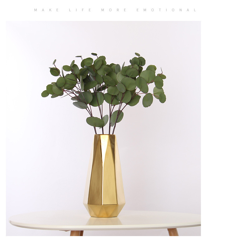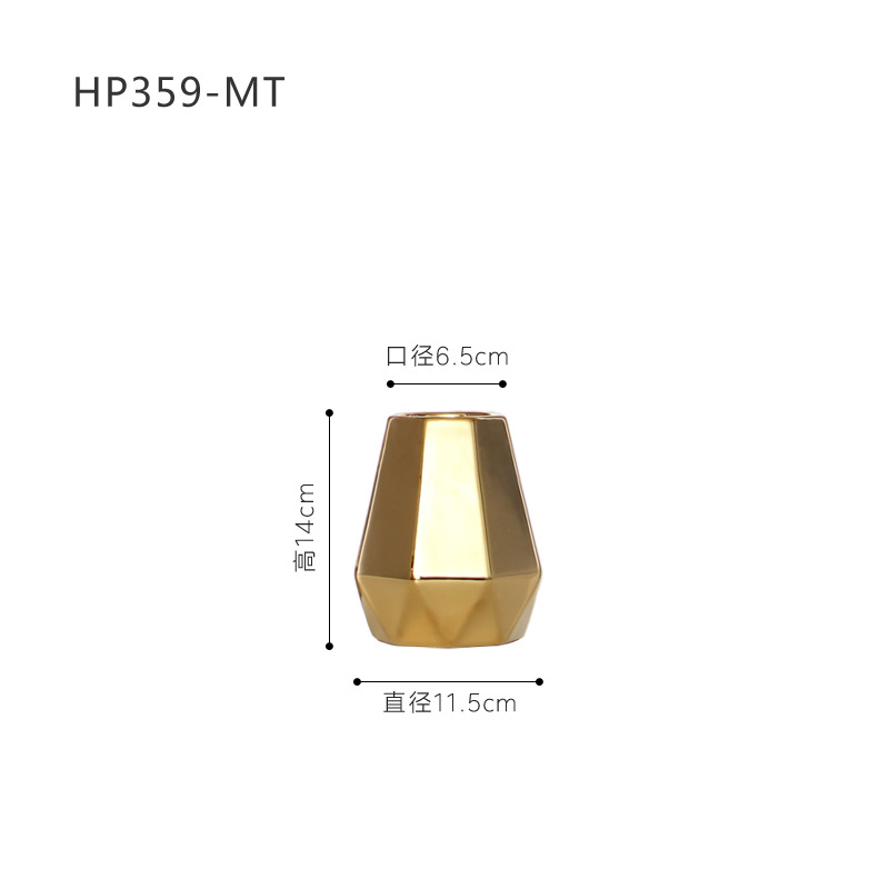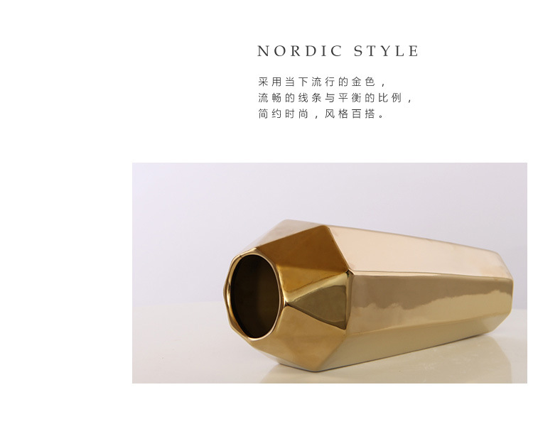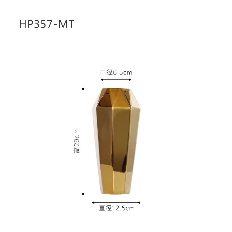 황금 간단한 북유럽 스타일 전기 도금 기하학적 추상 세라믹 꽃병 디자이너 모델 룸 장식품 도매스토어 가기