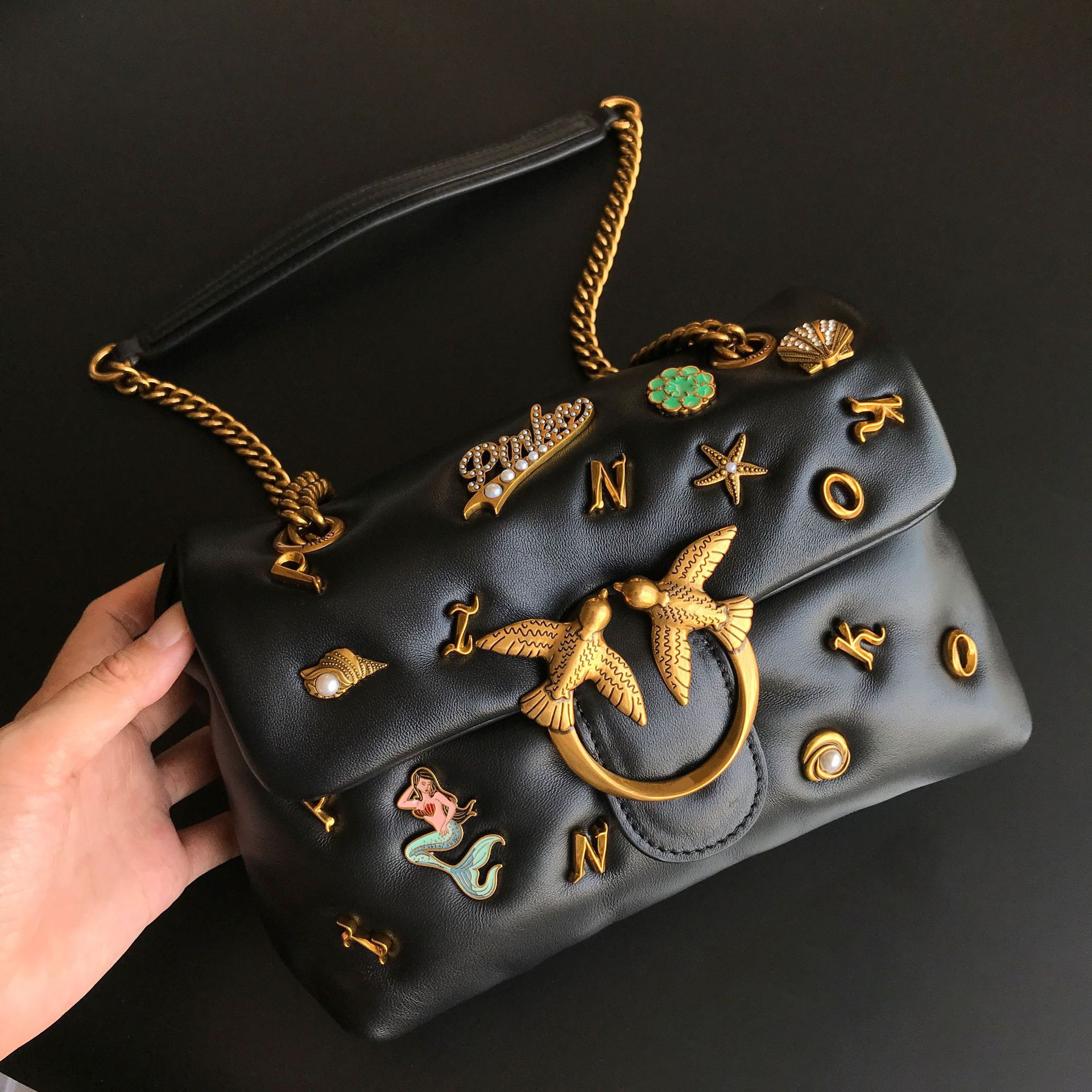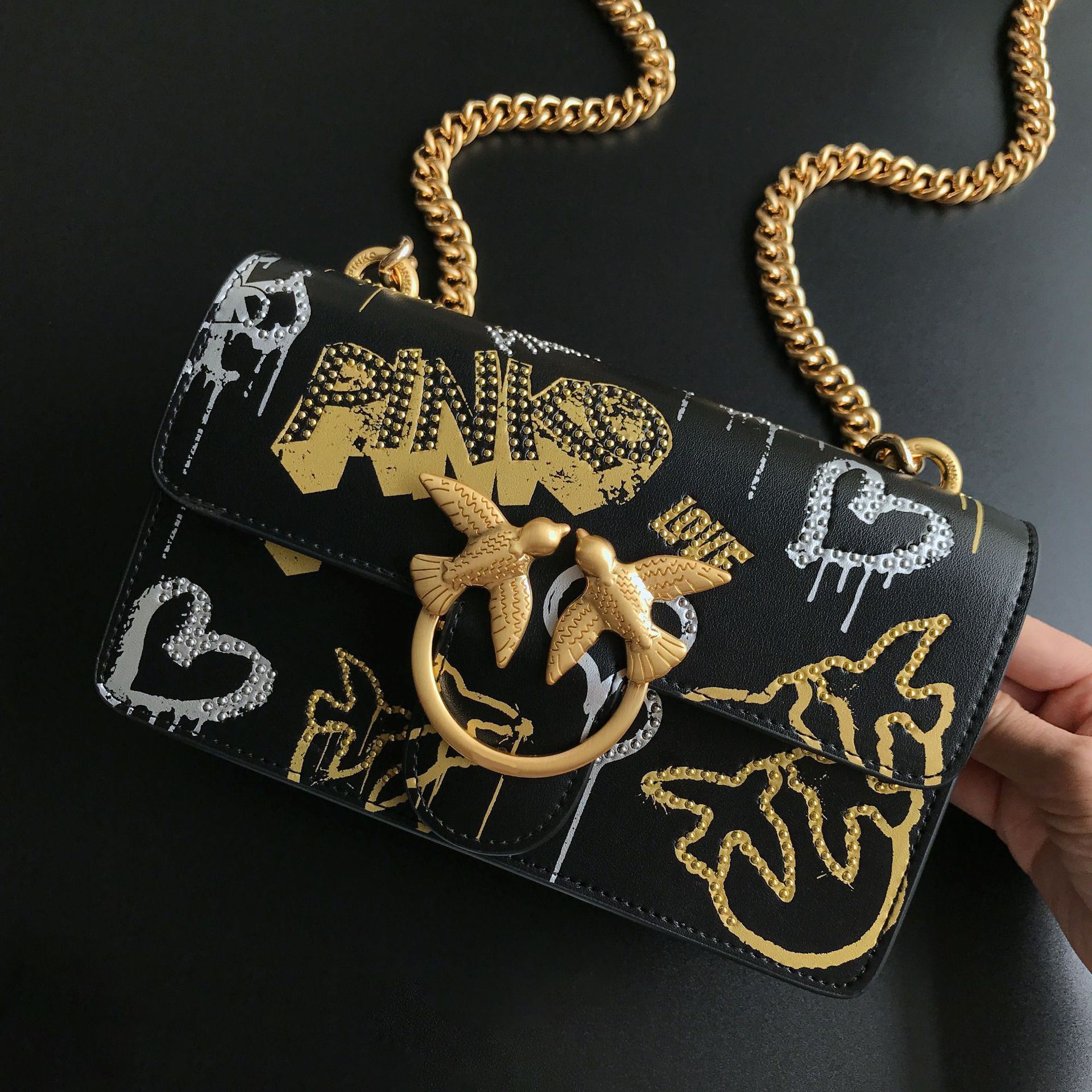 새로운 핑코 같은 스타일 체인 삼키는 가방 디오니어 가죽 어깨 크로스 바디 섬유 바이이 엠보싱 언더 암 가방 여성용 가방스토어 가기