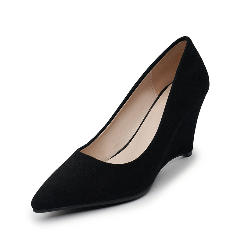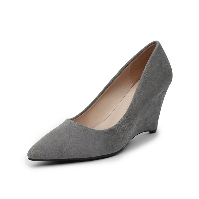 웨지 슈즈 여성 작업 신발 2023 새로운 봄과 가을 여성 신발 한국식 스웨이드 다용도 얕은 7cm 하이힐