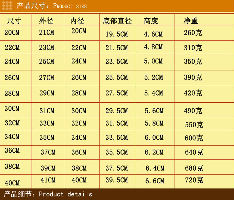 ●【产品规格】:24cm/26cm/28cm/32cm/36cm/40cm