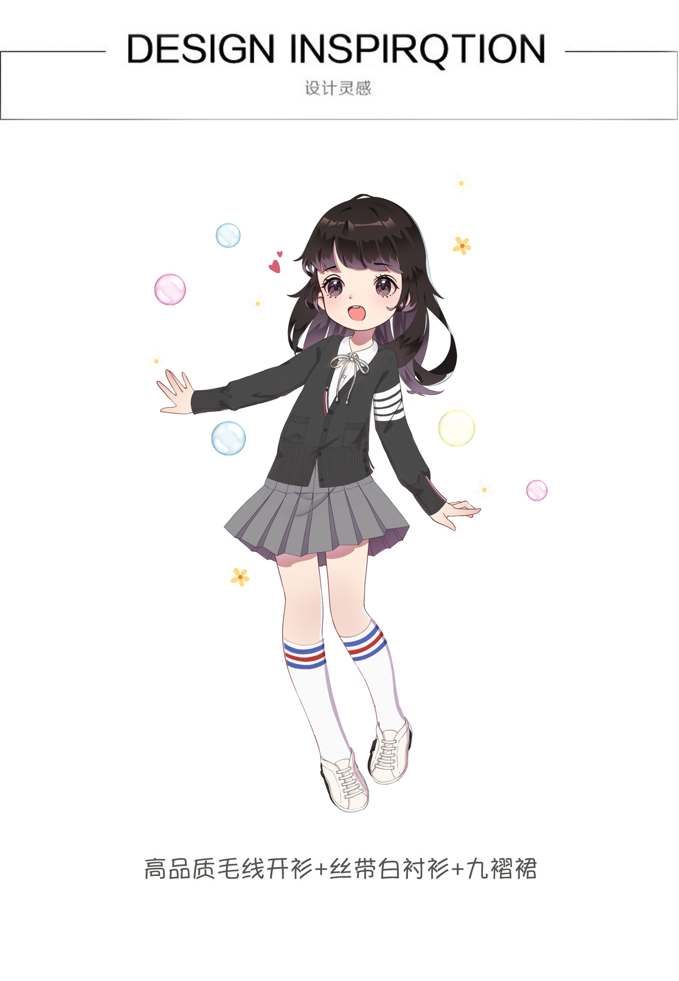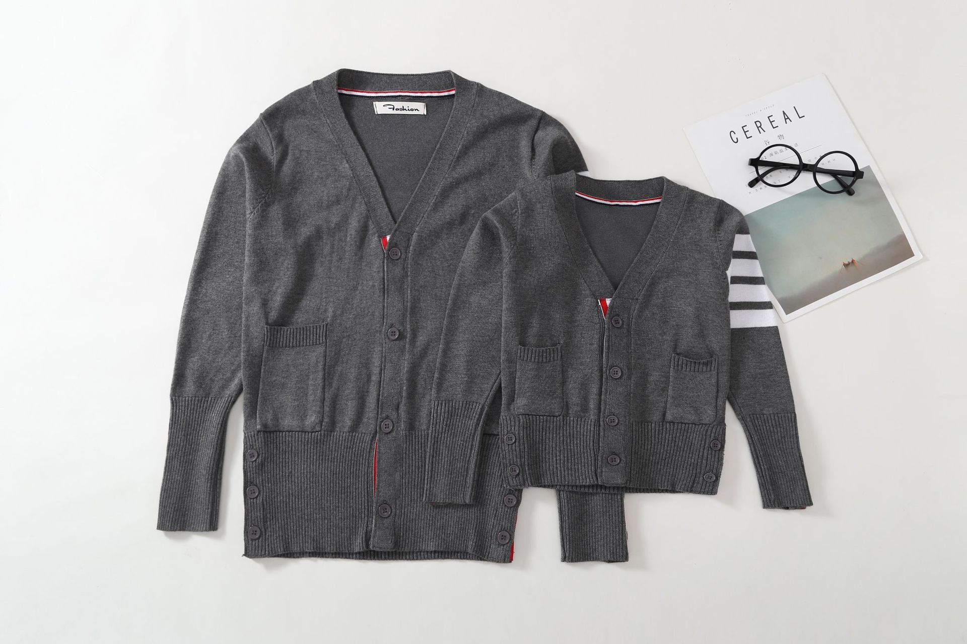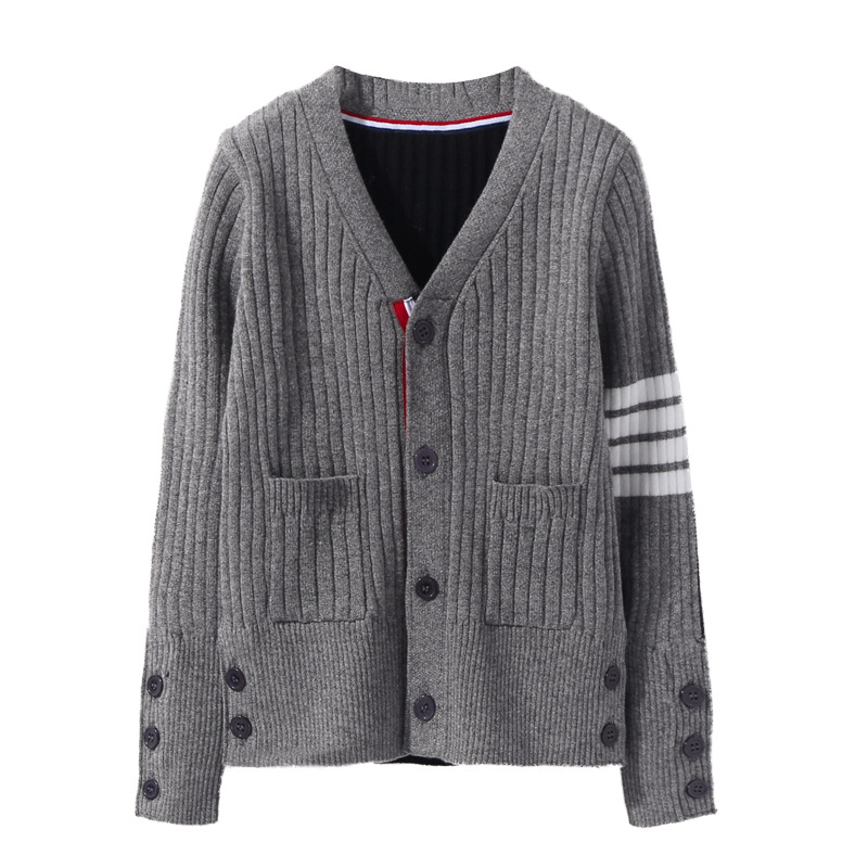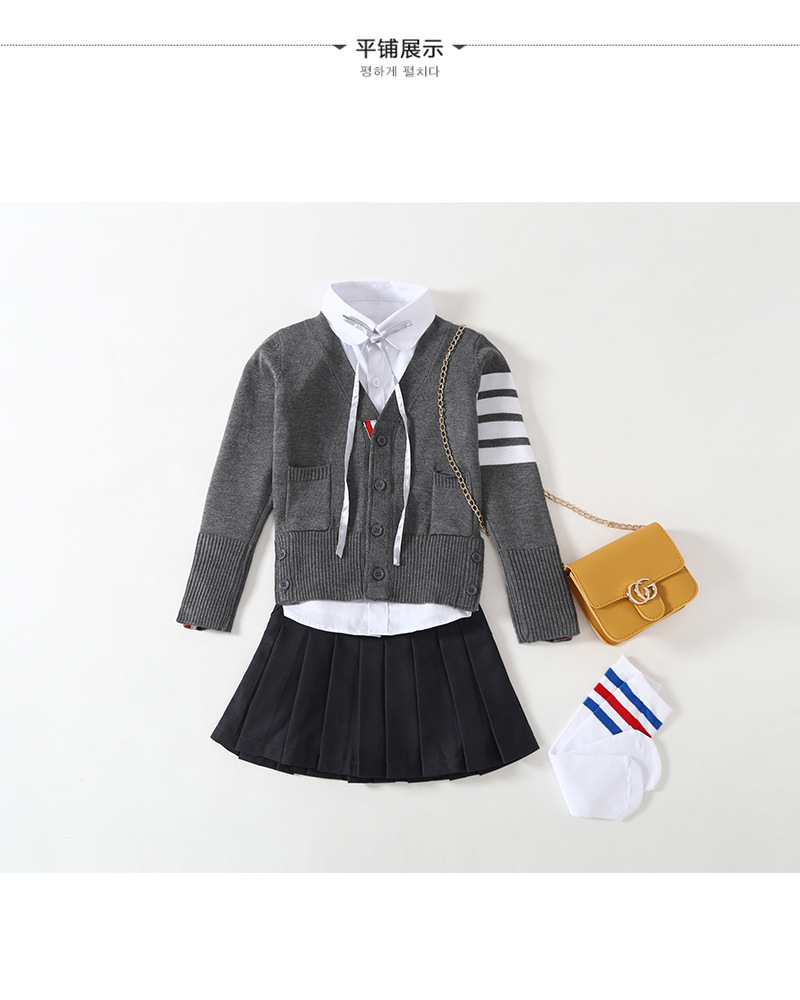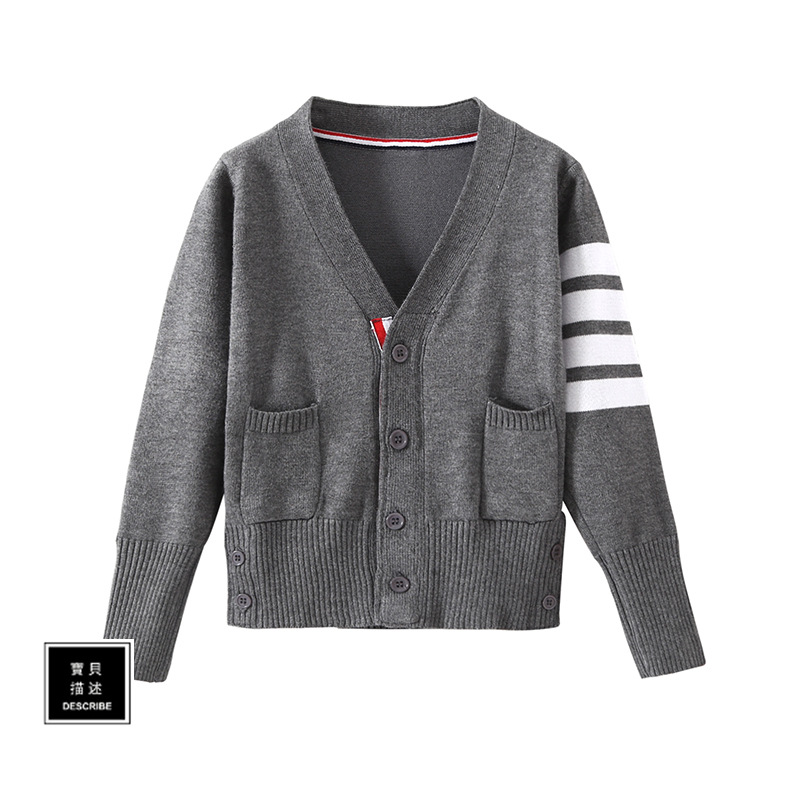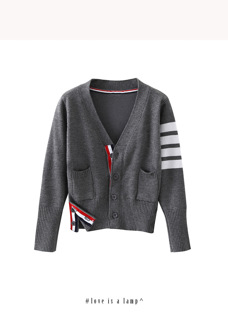 TB 가디건 봄과 가을 의류 한국 V-넥 니트 스웨터 여아 스웨터 코트 중간 길이 루즈한 긴팔 탑 트렌디