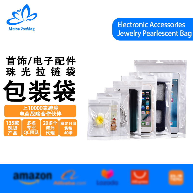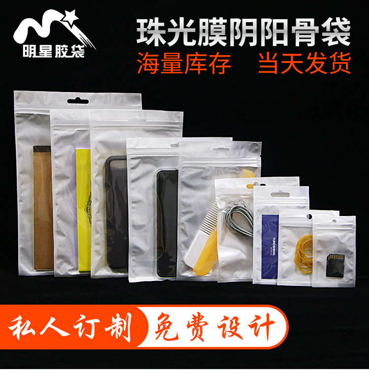진주빛 필름 음양뼈 가방, 흰색 지퍼백, 반투명 플라스틱 밀봉 가방, 휴대폰 케이스, 보석 포장 가방 도매스토어 가기