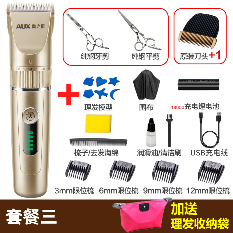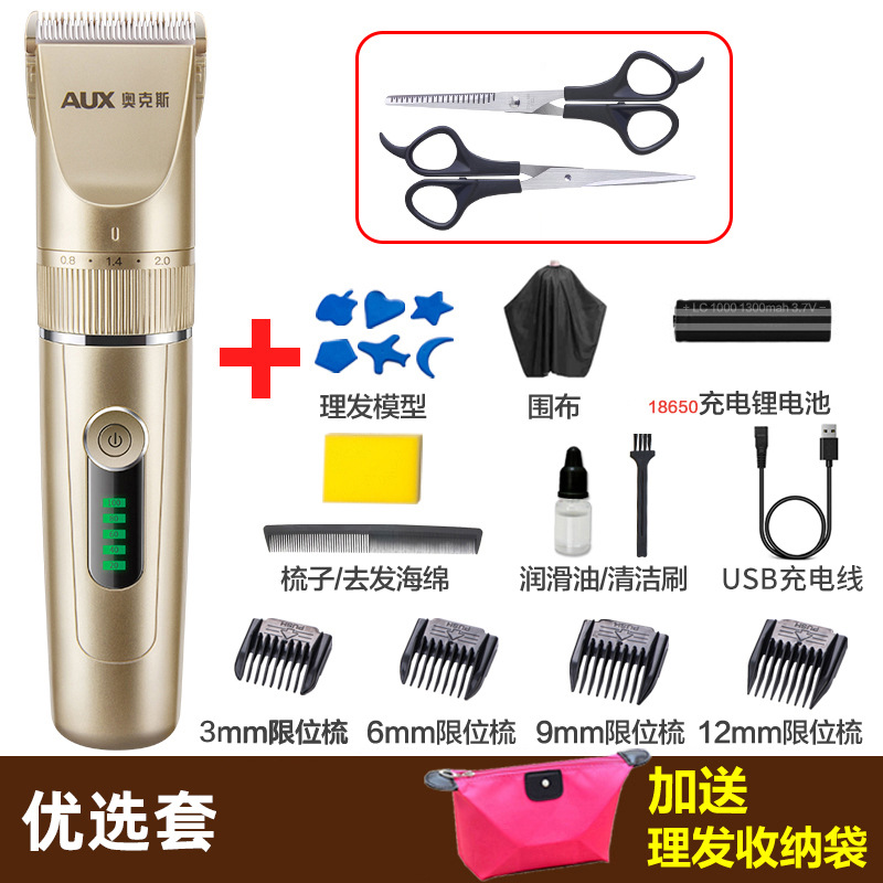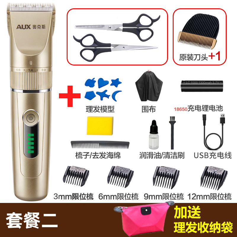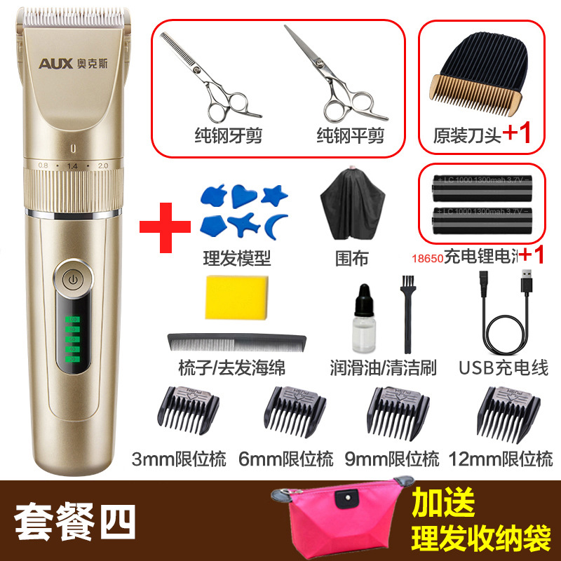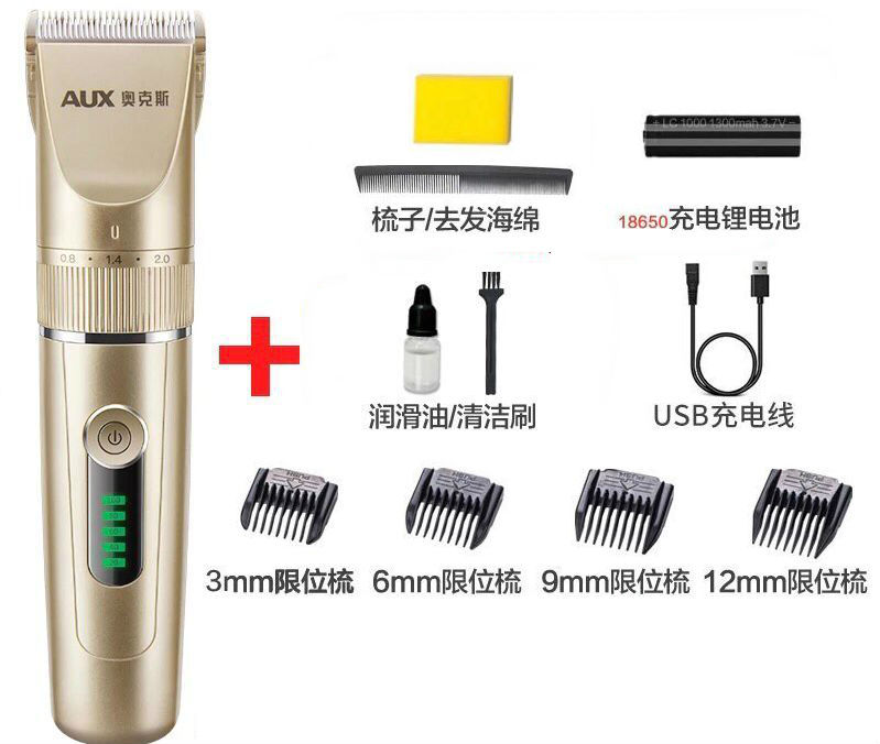 产品配件:说明书、四个限位梳、一个USB充电线、一瓶润滑油、一只清洁刷、一个海绵、一个平梳
