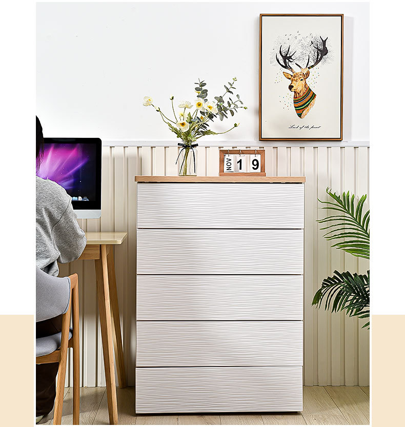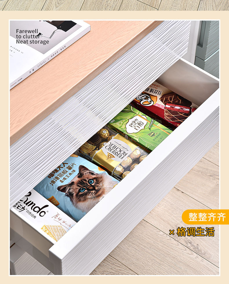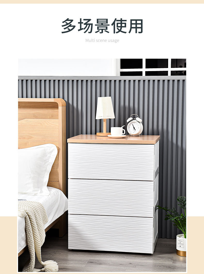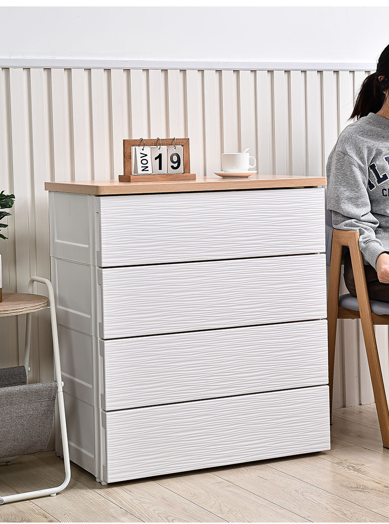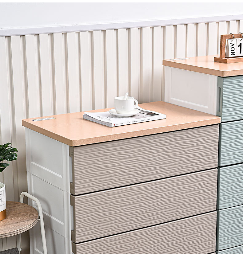 심플하고 모던한 플라스틱 수납장 서랍형 캐비닛 일체형 무설치 목재 상판 정리 수납장 침대 옆 테이블스토어 가기