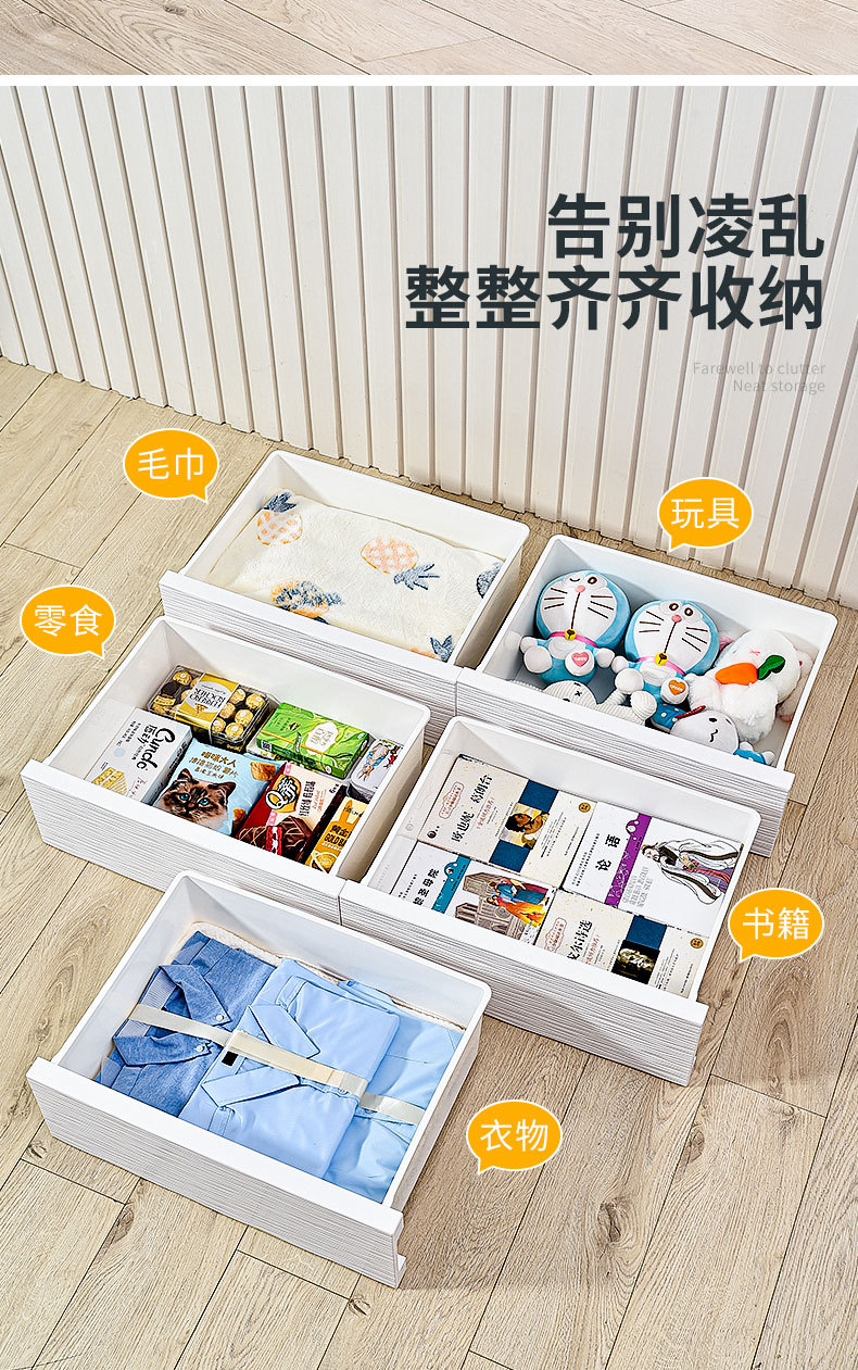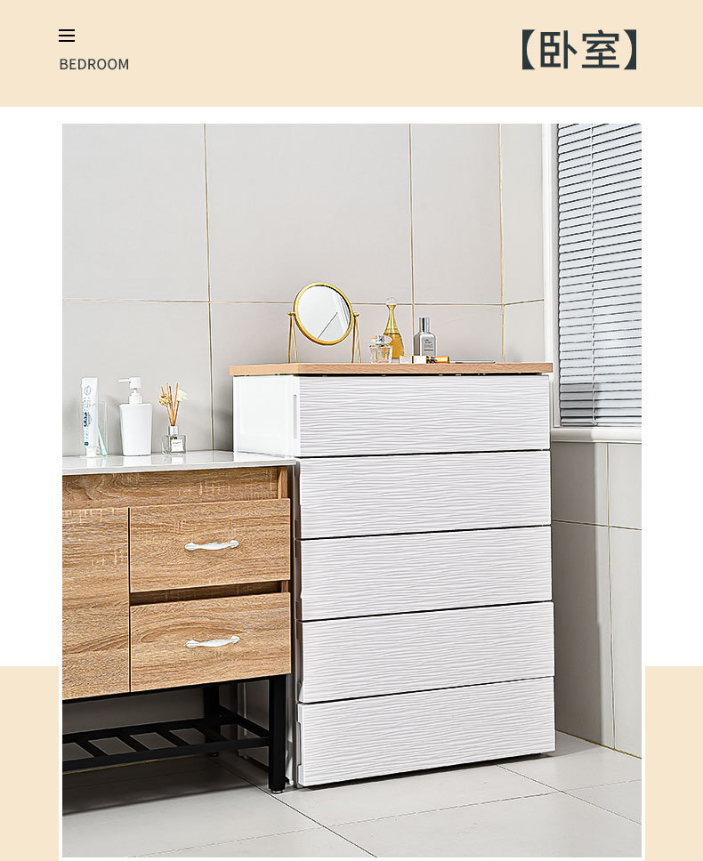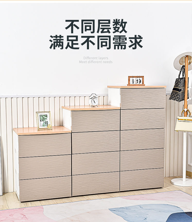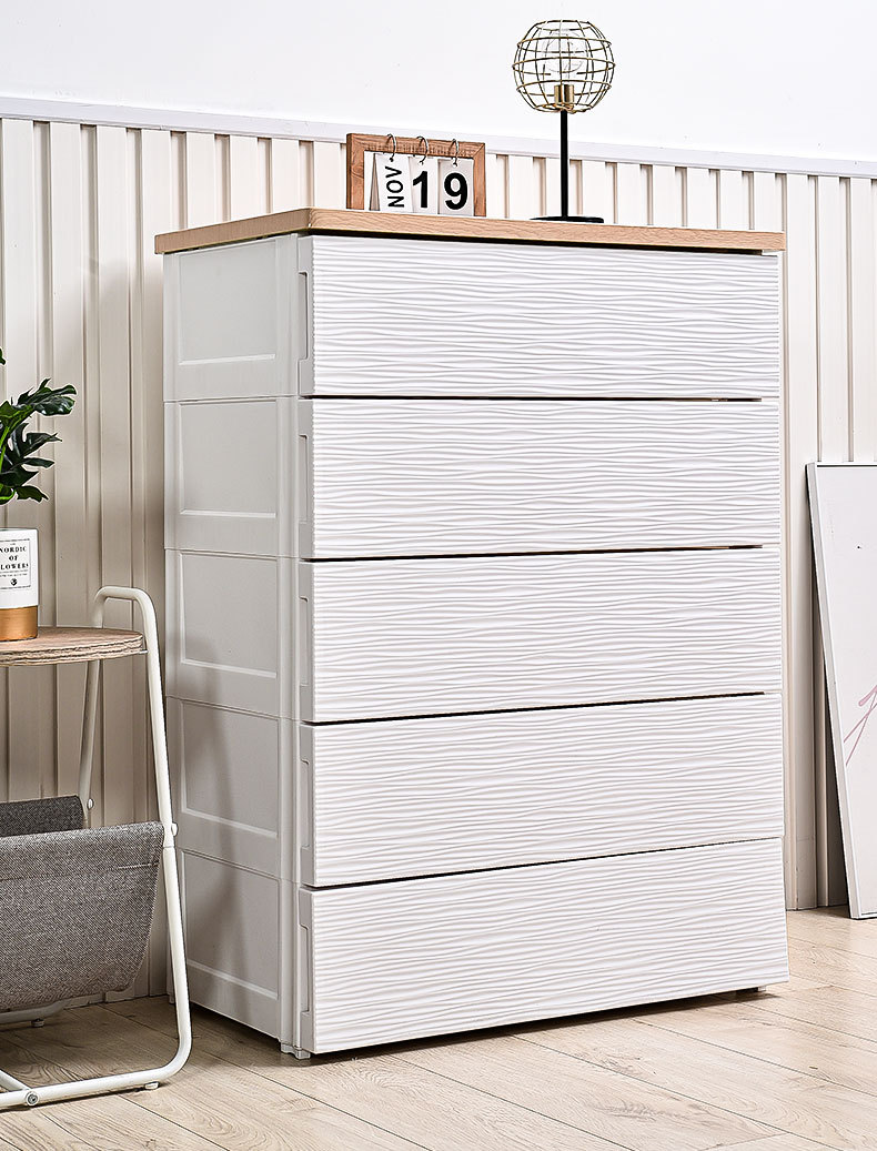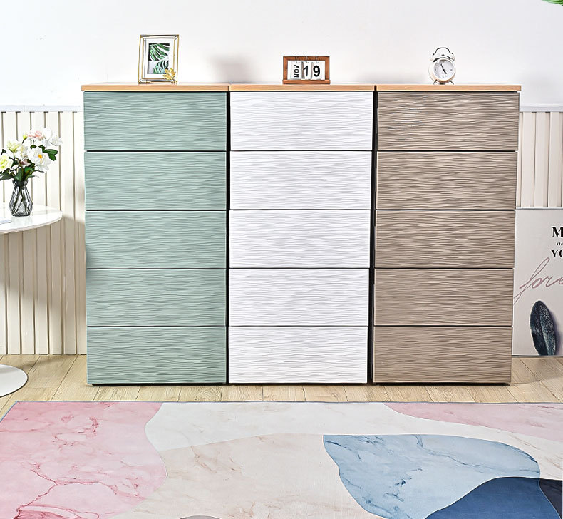 심플하고 모던한 플라스틱 수납장 서랍형 캐비닛 일체형 무설치 목재 상판 정리 수납장 침대 옆 테이블스토어 가기