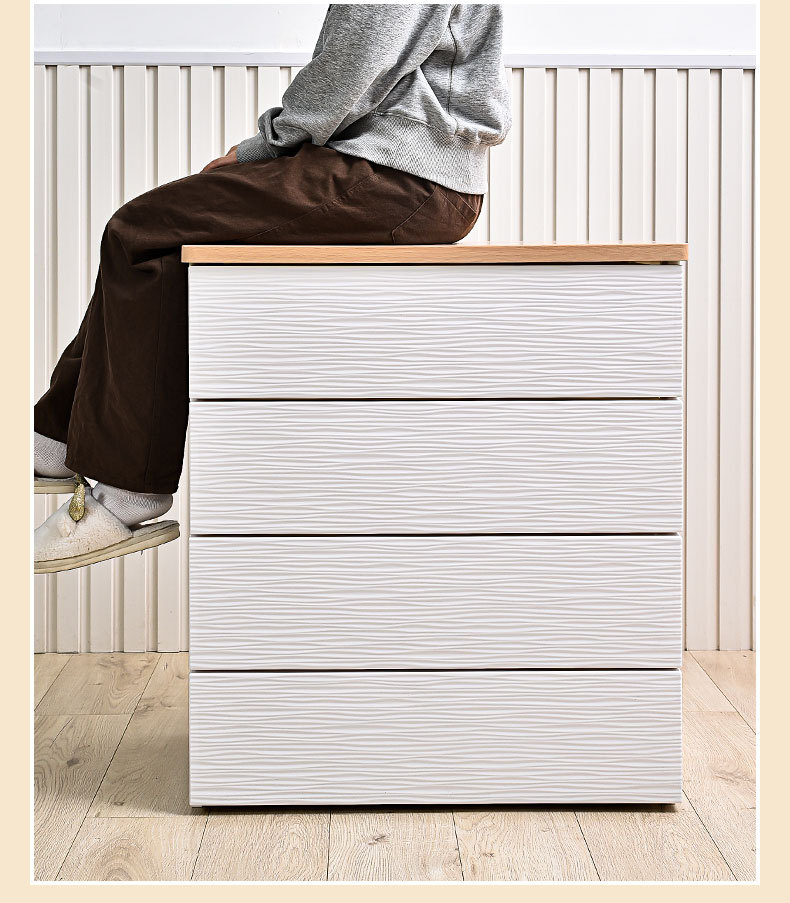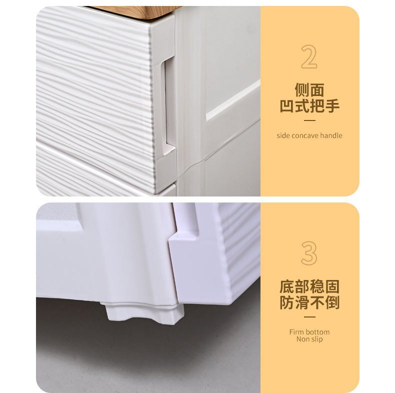 심플하고 모던한 플라스틱 수납장 서랍형 캐비닛 일체형 무설치 목재 상판 정리 수납장 침대 옆 테이블
