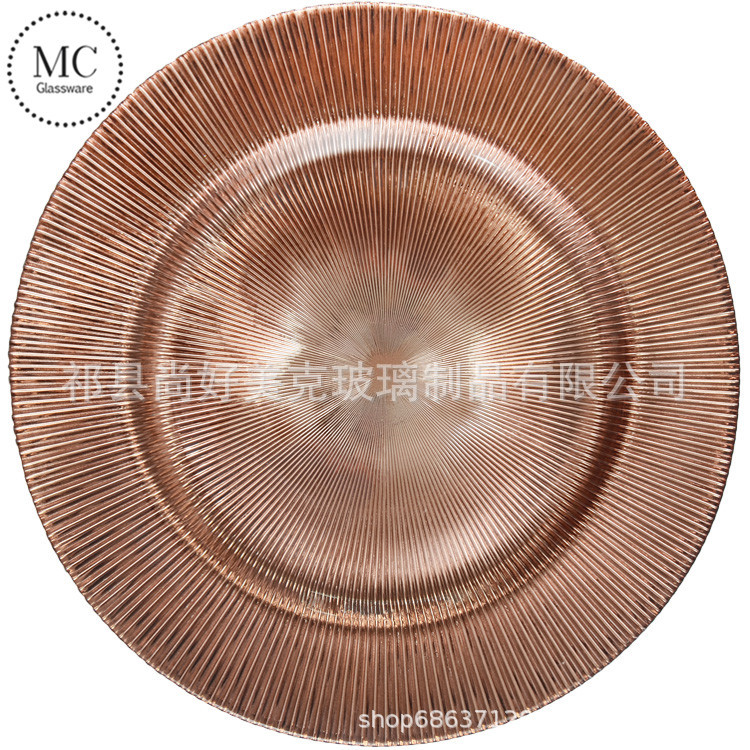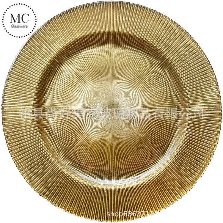 尚好美克 祁县厂家批发欧式创意金边玻璃盘子 宴会摆盘展示盘