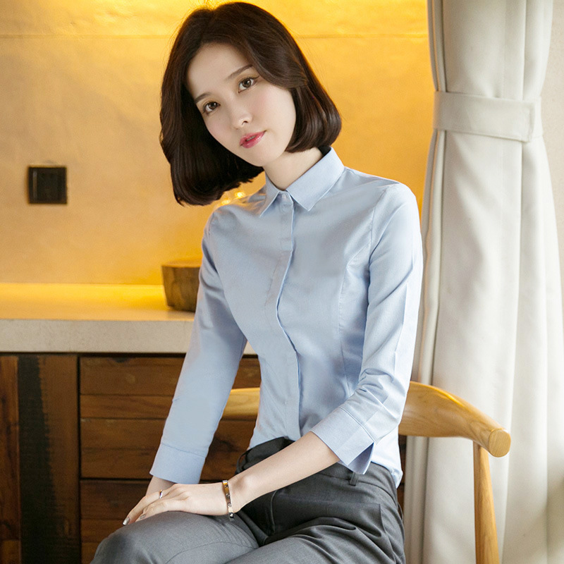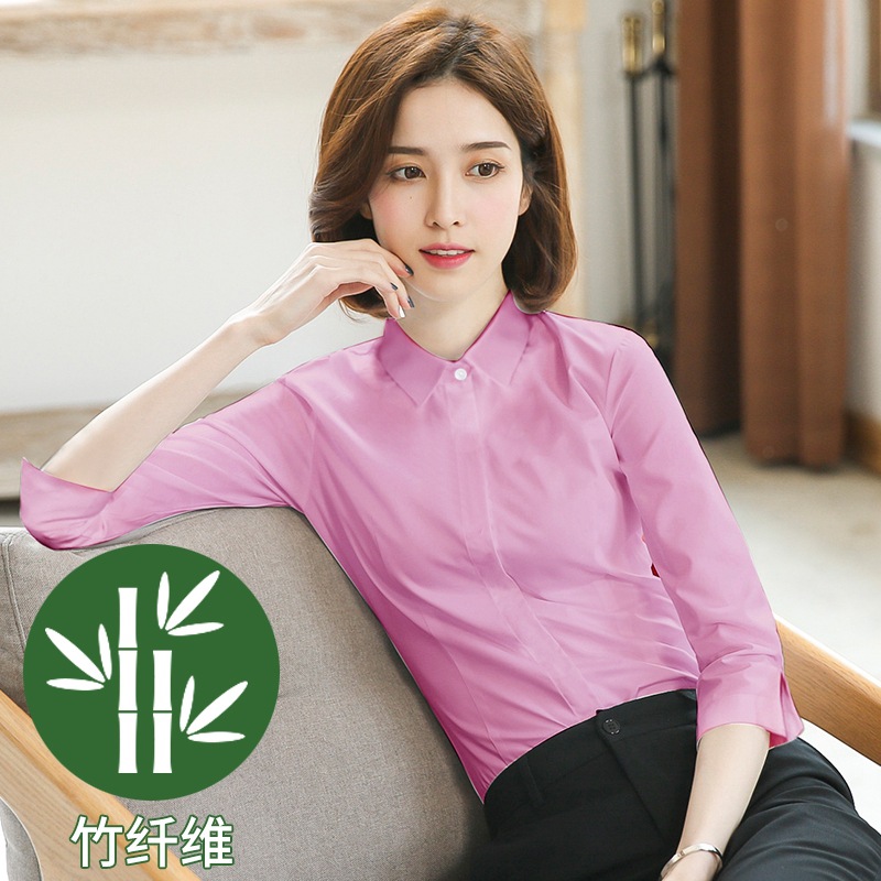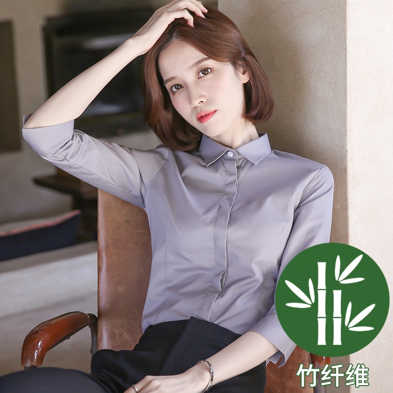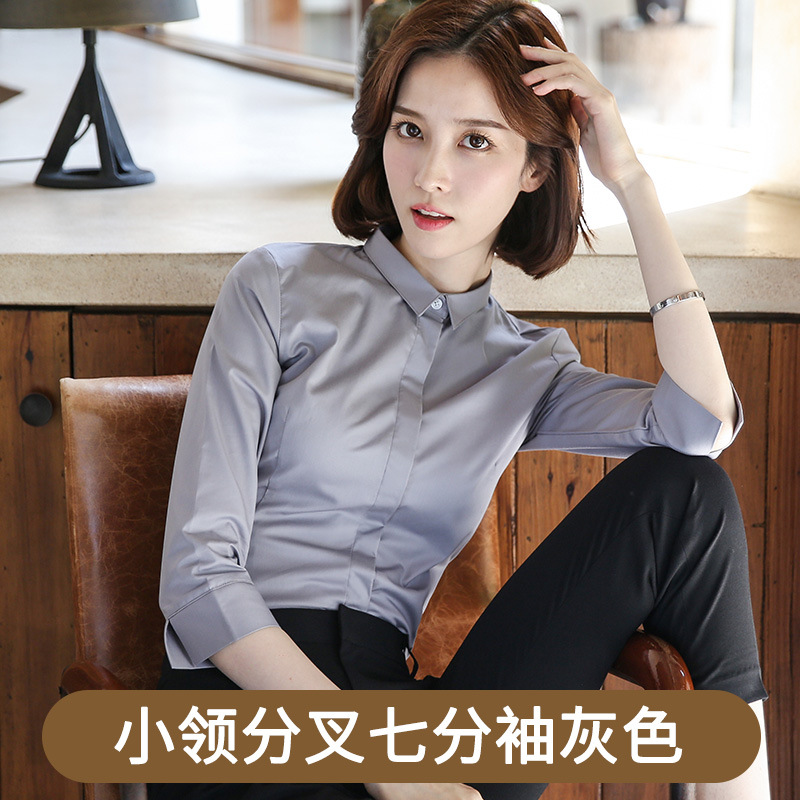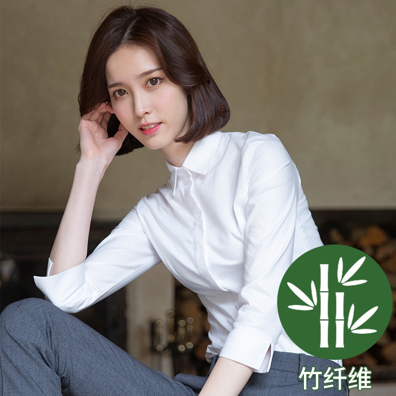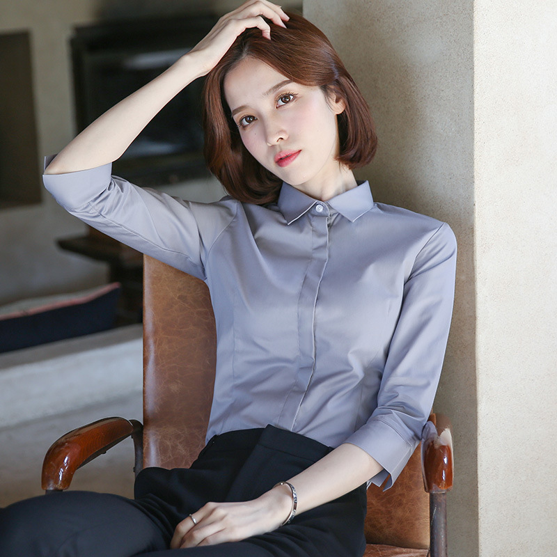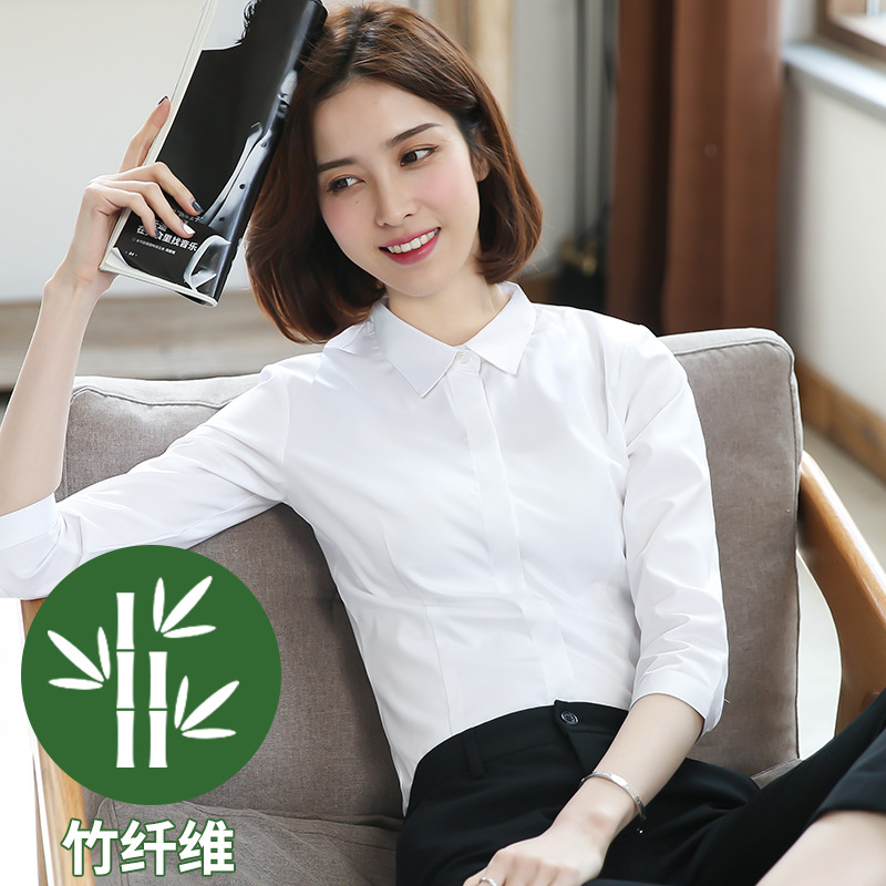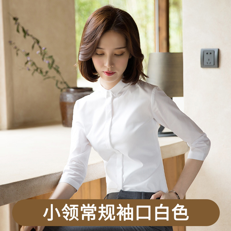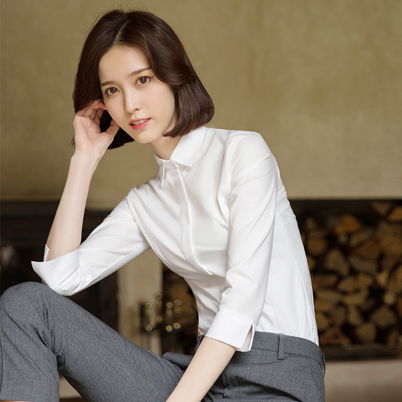 화이트 7부 소매 셔츠 여성용 전문직 2026 봄 여름 OL 정장 슬림핏 작업복 중간 소매 셔츠스토어 가기