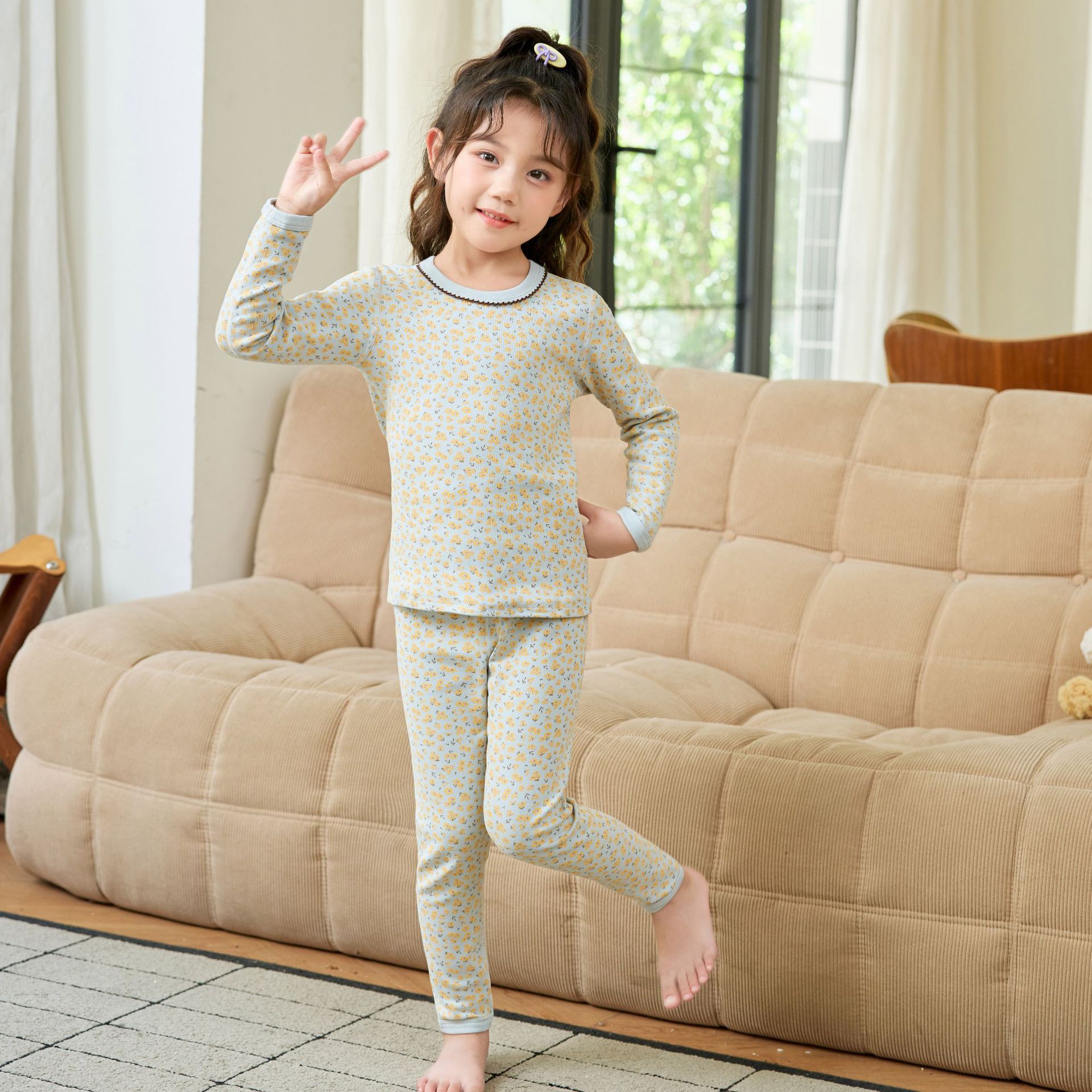 일본과 한국의 중대형 아동 속옷 세트 순면 잠옷 가을 겨울 따뜻한 뼈없는 아기 가을 옷 가을 바지 가정복 카테고리 A스토어 가기