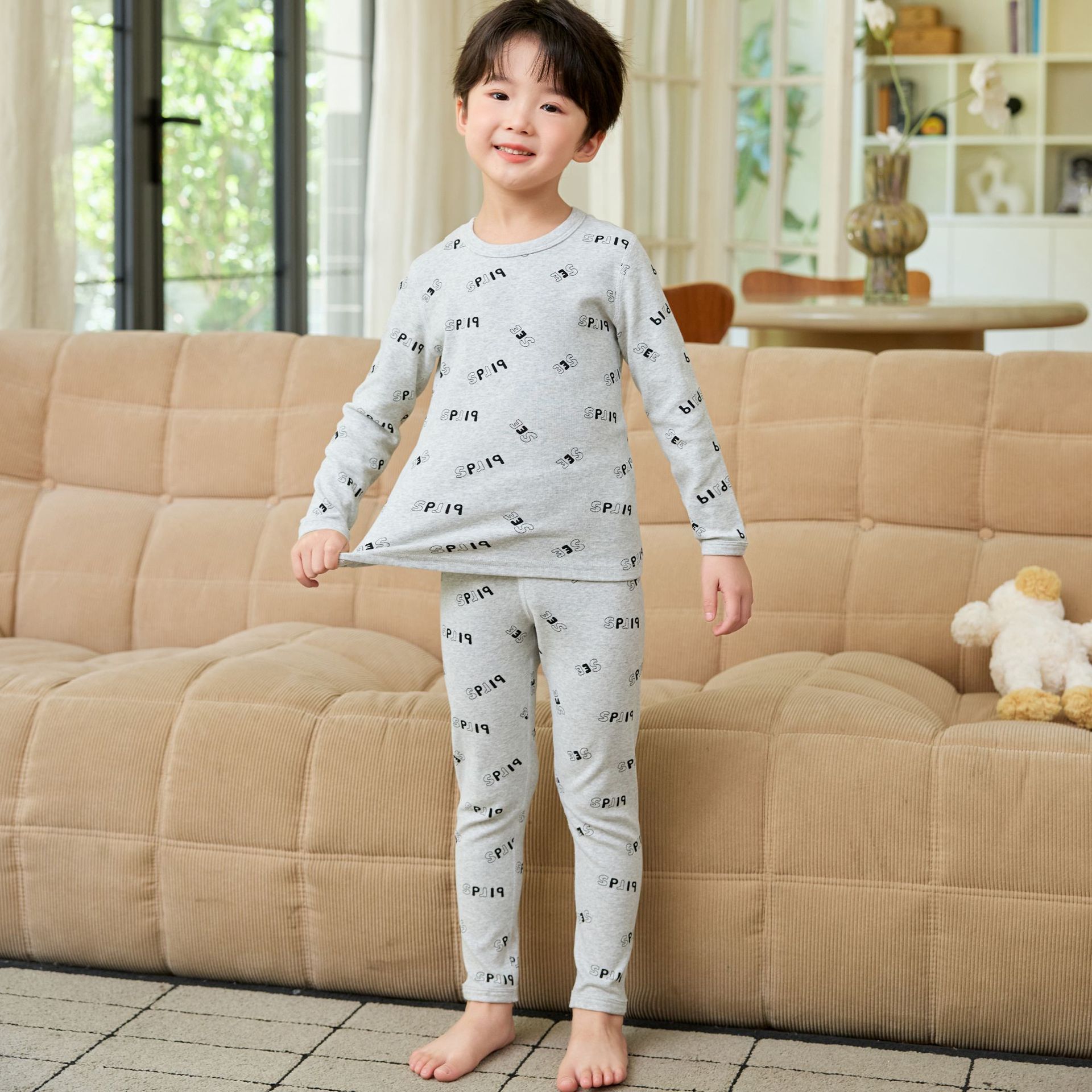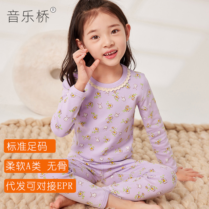 일본과 한국의 중대형 아동 속옷 세트 순면 잠옷 가을 겨울 따뜻한 뼈없는 아기 가을 옷 가을 바지 가정복 카테고리 A