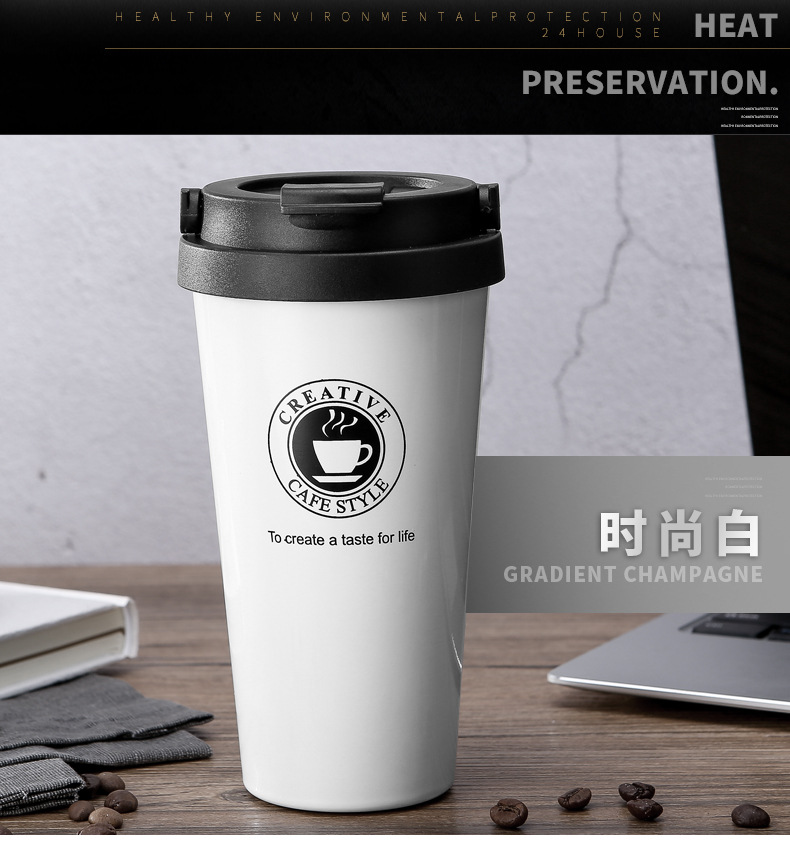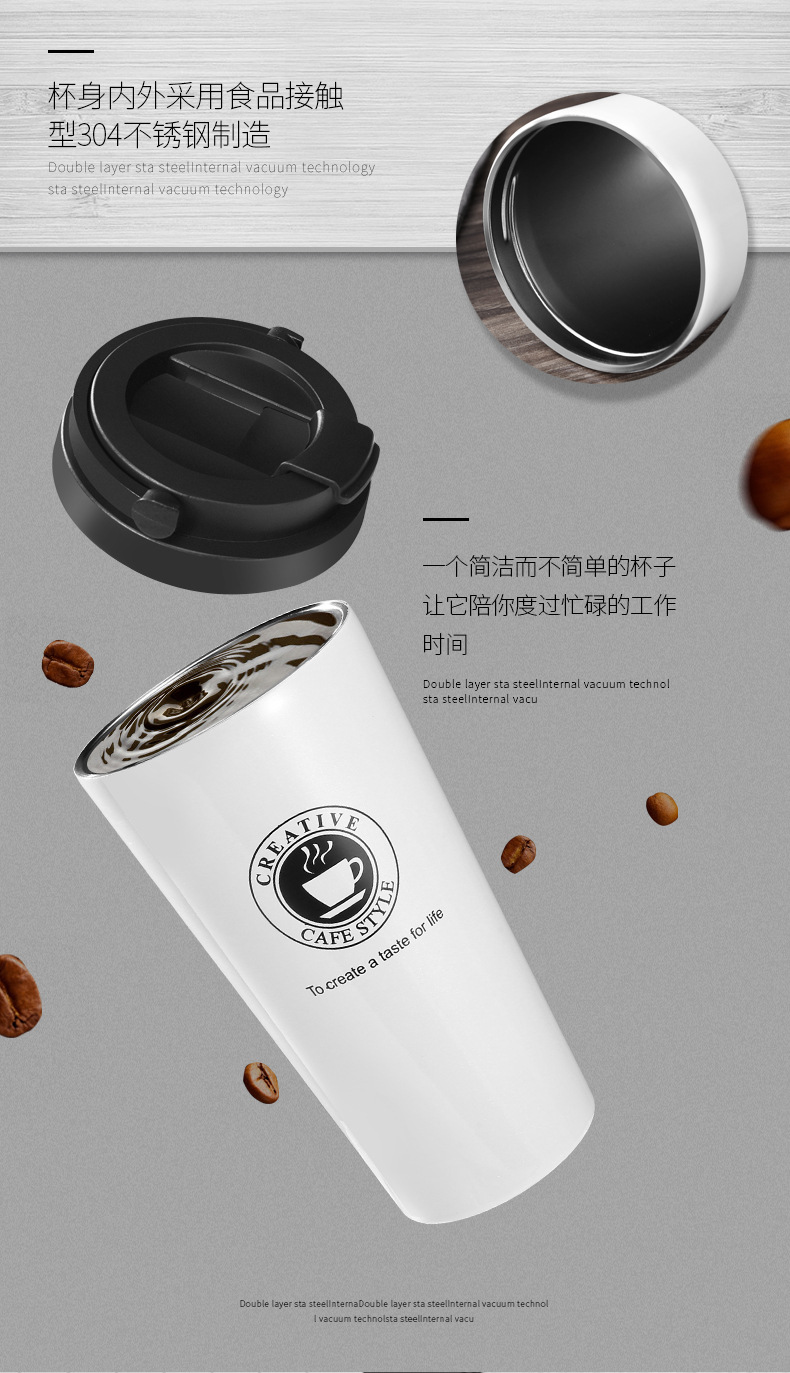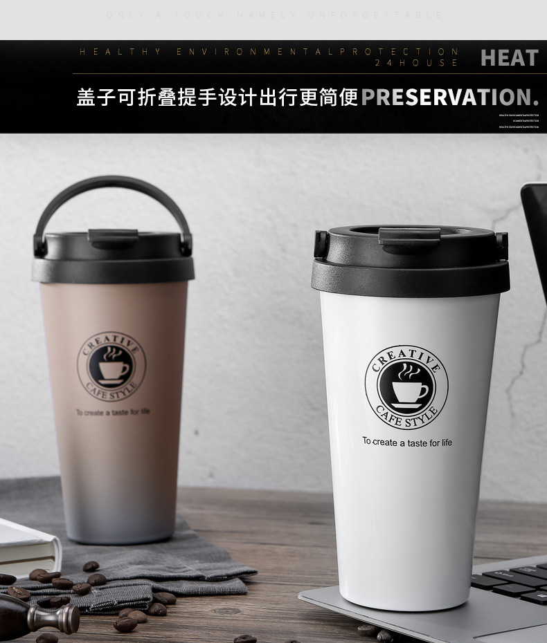 더블 레이어 304 스테인레스 보온병 컵 패션 사무실 선물 커피 컵 손잡이 야외 휴대용 물 컵
