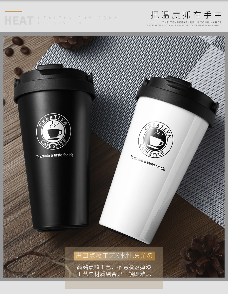 더블 레이어 304 스테인레스 보온병 컵 패션 사무실 선물 커피 컵 손잡이 야외 휴대용 물 컵스토어 가기