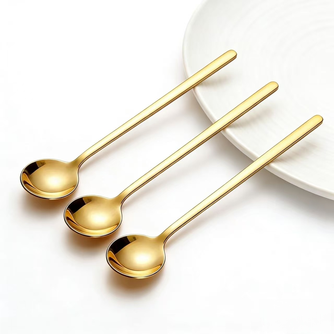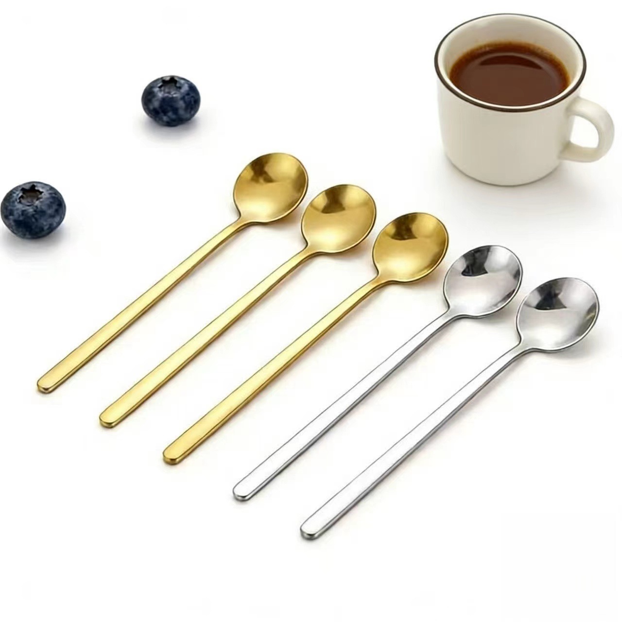 304 스테인레스 스틸 커피 믹싱 디저트 작은 둥근 숟가락 410 스테인레스 스틸 황금 작은 둥근 숟가락 디저트 믹싱 스푼