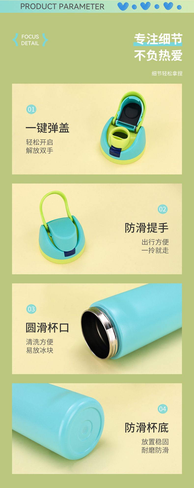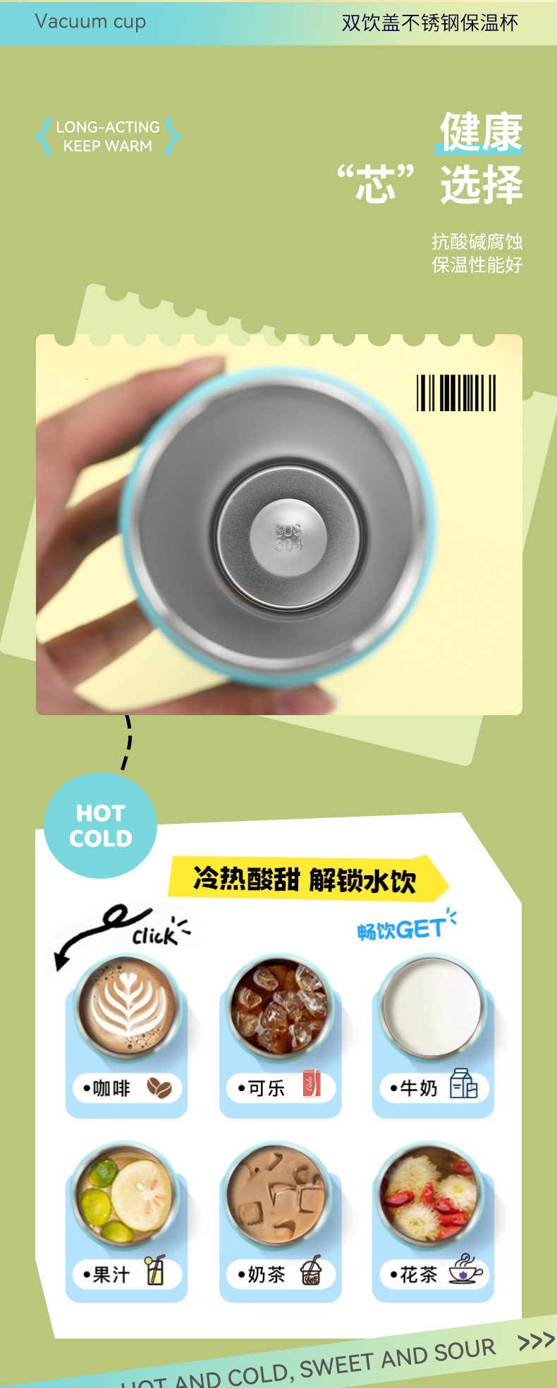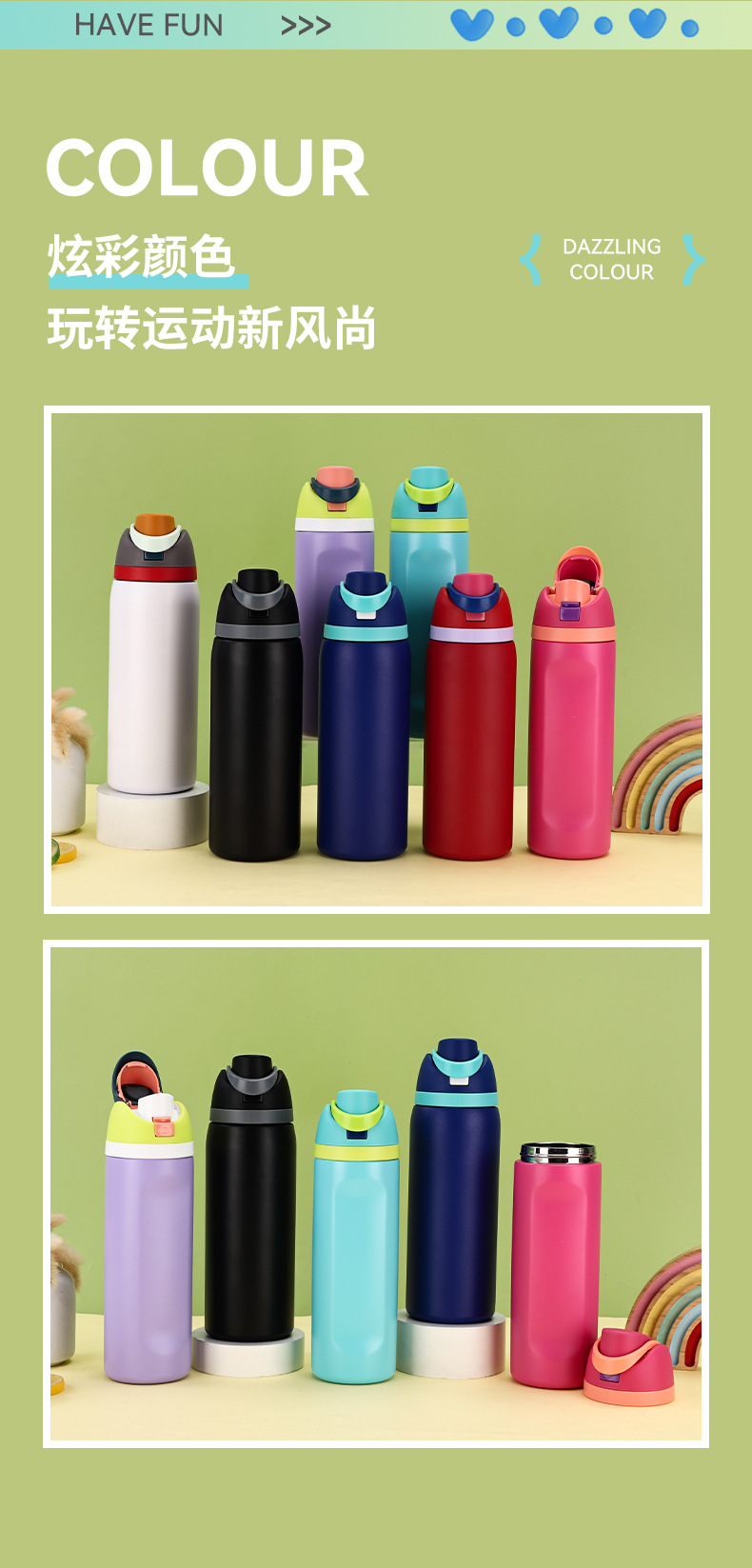 크로스보더 이중 뚜껑 스테인리스 보온병 남녀 야외 스포츠 과일컵 고급스러운 디자인 끈이 달린 점프컵스토어 가기