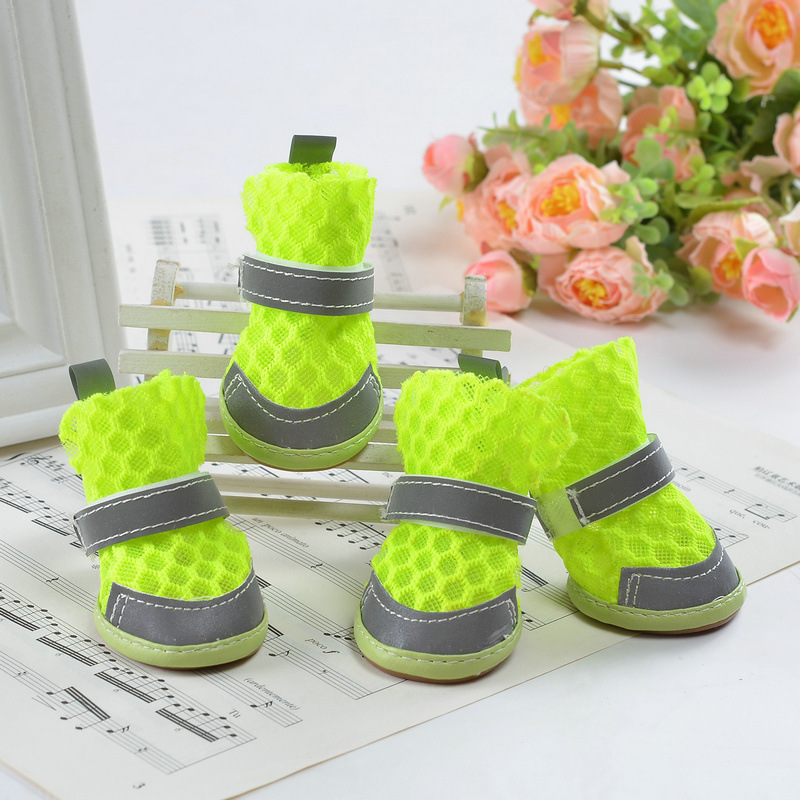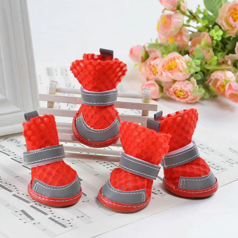여름 통기성 미끄럼 방지 애완 동물 신발 반사 메쉬 중공 편안한 곰 작은 개 발 커버 개 제품 봄스토어 가기