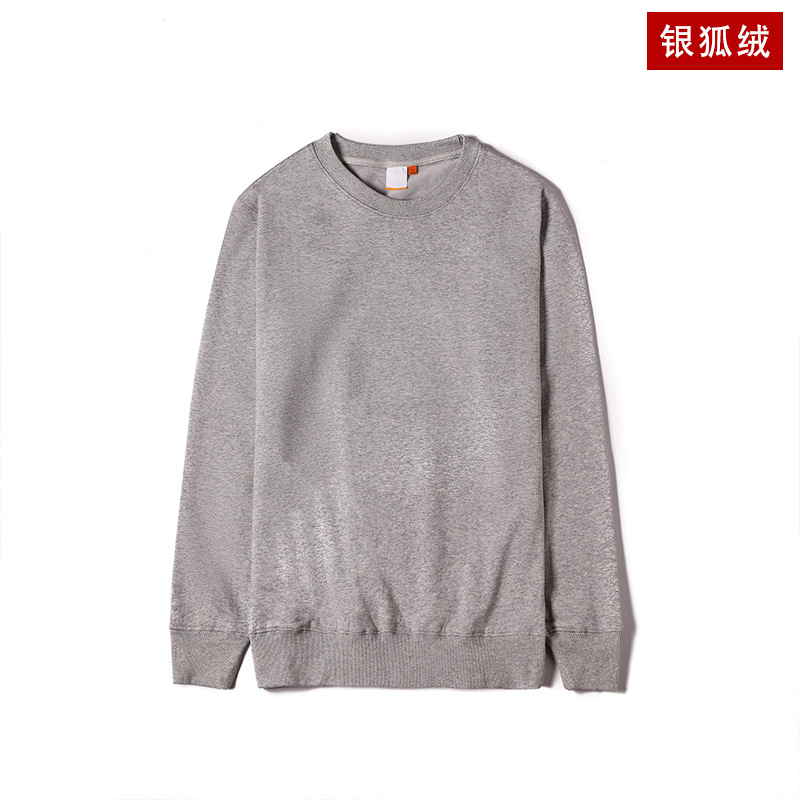 2020 겨울 뉴 실버 폭스 벨벳 크루 넥 스웨터 기모 두꺼운 단색 스웨터 로고 남성 스웨터