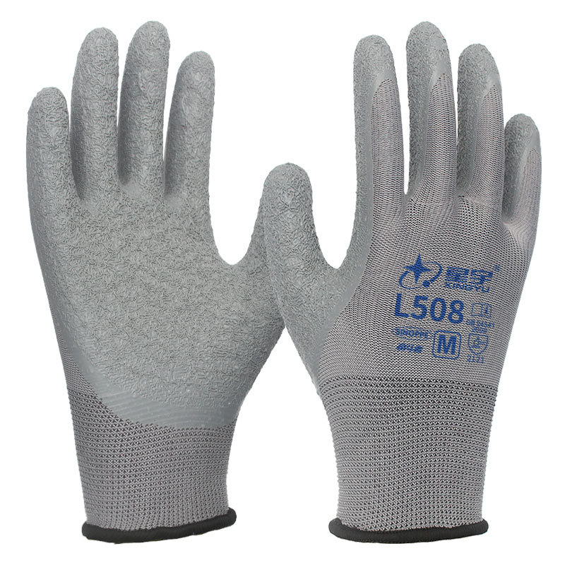 Xingyu L508 라텍스 주름 장갑 작업용 도매 부드러운 미끄럼 방지 내마모성 통기성 고무 코팅 보호 장갑 Xingyu