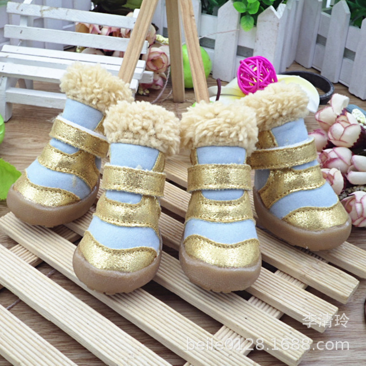 • 产品介绍:麂皮绒+金色pu+舒棉绒毛里+橡胶牛筋底,结合绑带与拉链设计,穿做方便实用性更好,冬天狗狗穿上显得更加的暖和