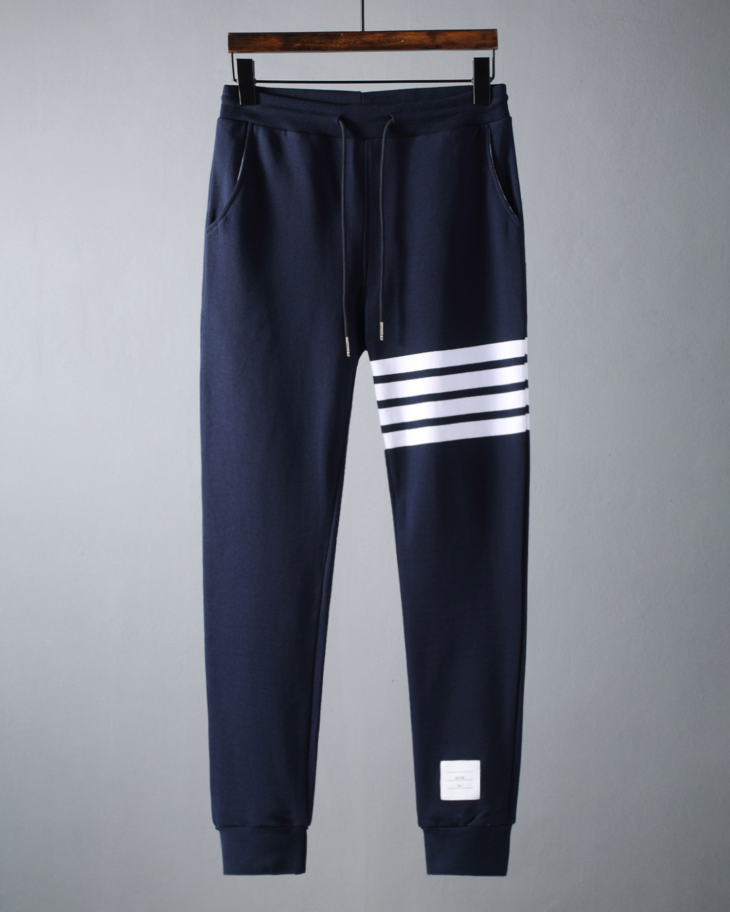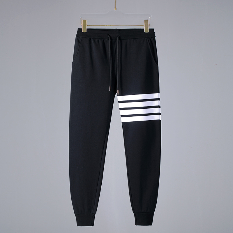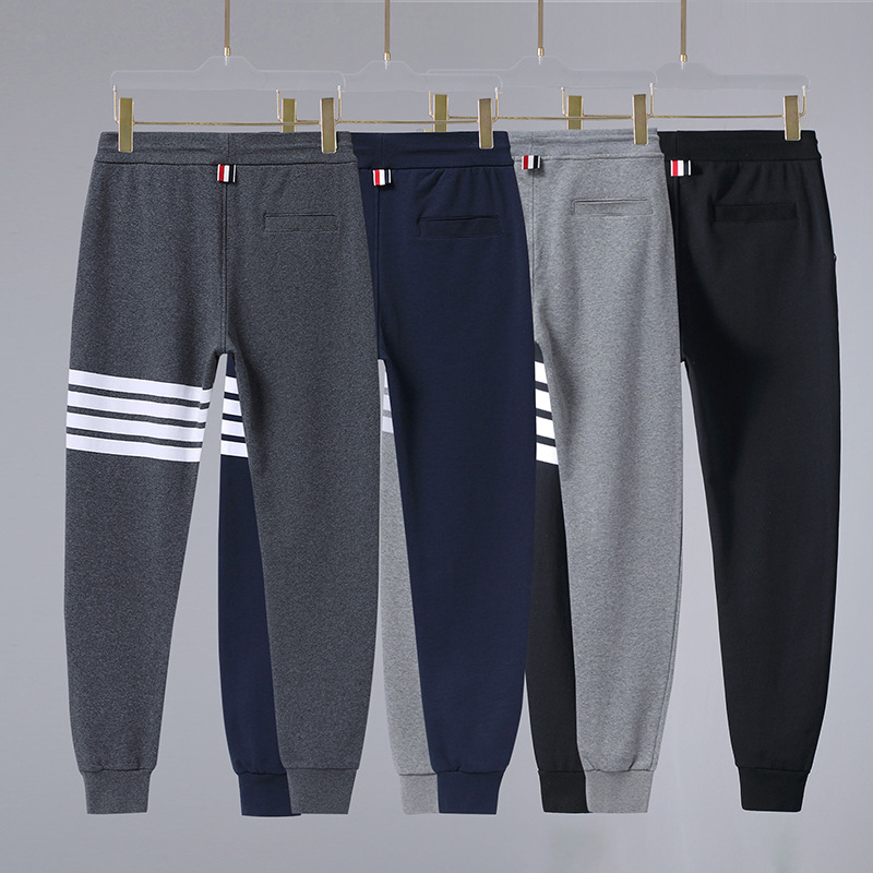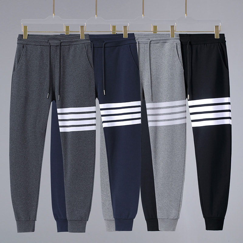 즉시 배송 가능한 TB JL 스웨트팬츠 트렌디 브랜드 컬러 직조 네줄 스트라이프 긴바지 유럽 및 미국 스타일 캐주얼 스포츠 테리 코튼 슬림핏 바지