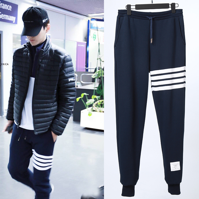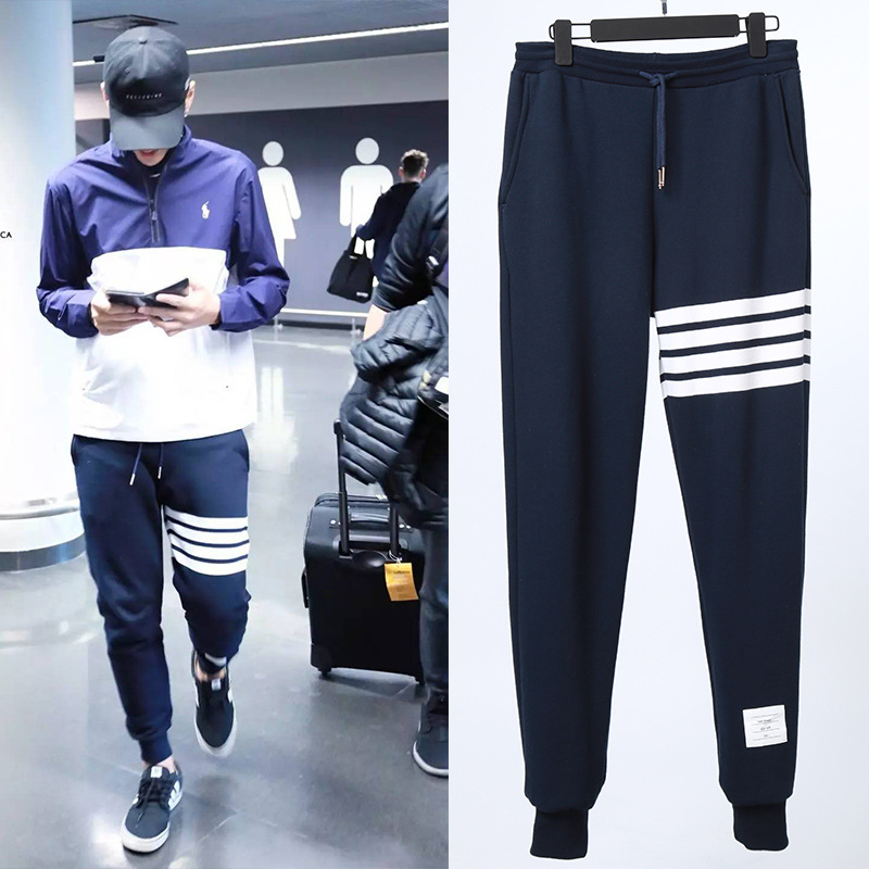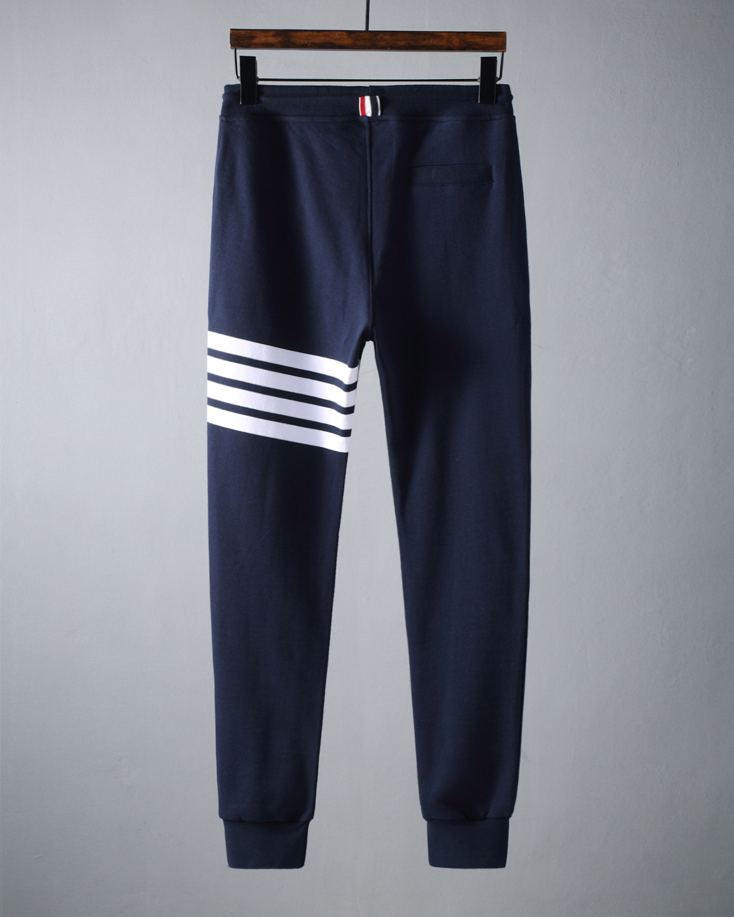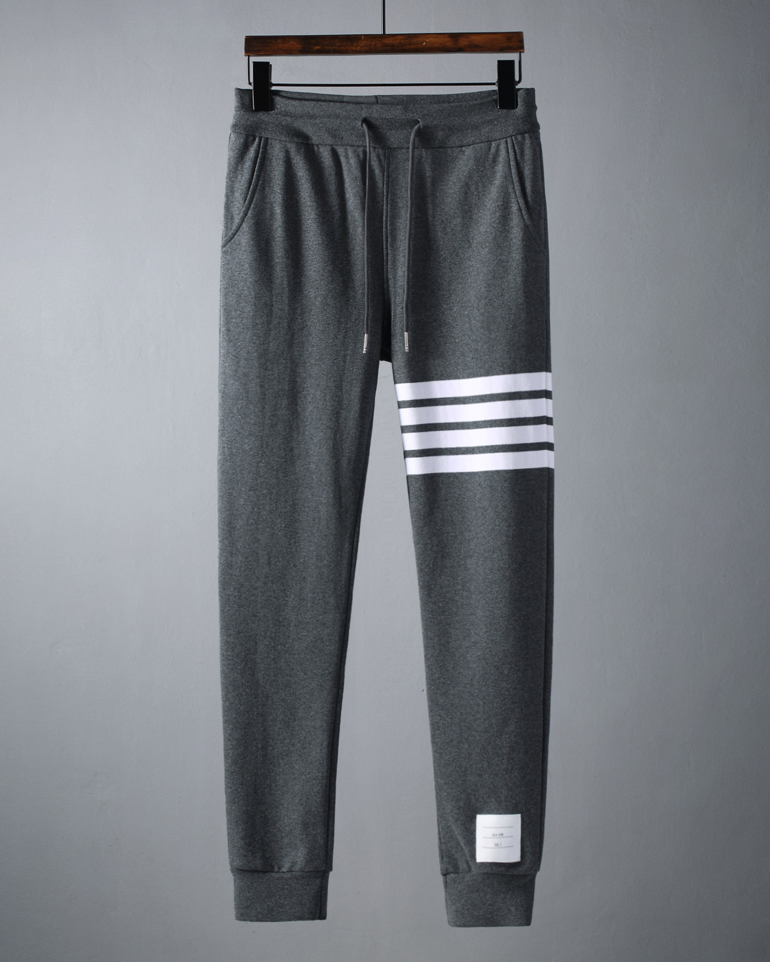 즉시 배송 가능한 TB JL 스웨트팬츠 트렌디 브랜드 컬러 직조 네줄 스트라이프 긴바지 유럽 및 미국 스타일 캐주얼 스포츠 테리 코튼 슬림핏 바지