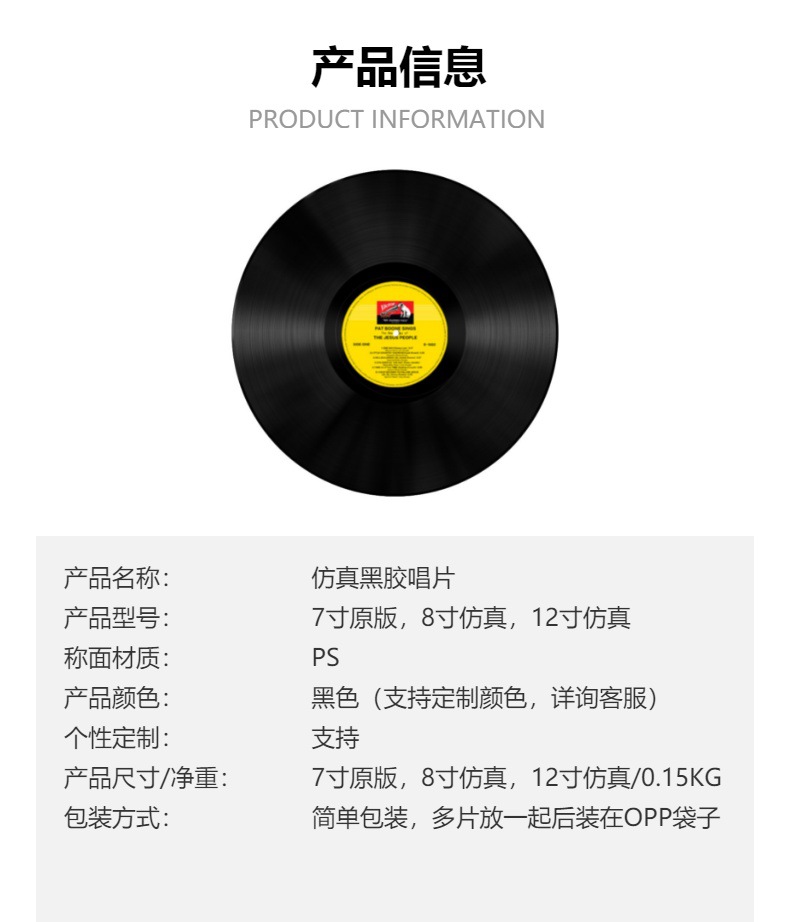 8寸仿真唱片净重约0.06KG.